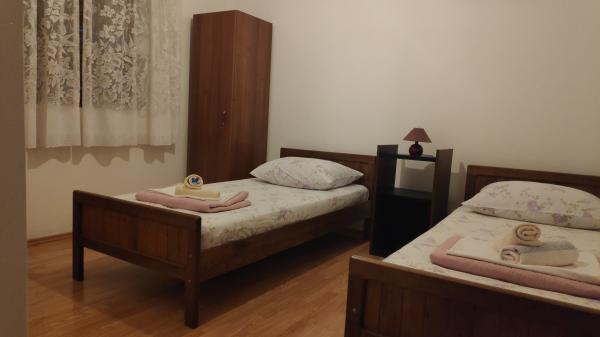 Objekt se nachází v klidné části Tribunj, asi 200m od pláže a 400m od centra. K dispozici je hlídané parkoviště a je možné využít gril ve dvoře. Oba apartmány jsou stejné jako byt v přízemí má terasu a balkon na patře. Každý z nich má kuchyň s připojeným obývacím pokojem, dvě ložnice a koupelnu. Oba mají klimatizaci, TV, bezdrátové připojení k internetu, kuchyň s nádobím. Cena zahrnuje pobytovou taxu a výměnu ložního prádla po 7 dnech.