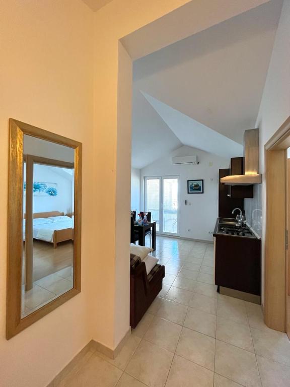 Apartmány Agata jsou Tribunju, v blízkosti přístavu, pláž je jen 3 minuty chůze. V prvním patře jsou dva apartmány s jednou ložnicí (A1, A2) s přistýlkou v jídelně / obývacím pokoji.