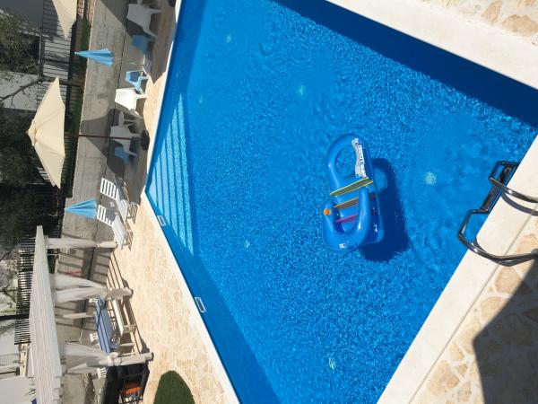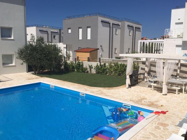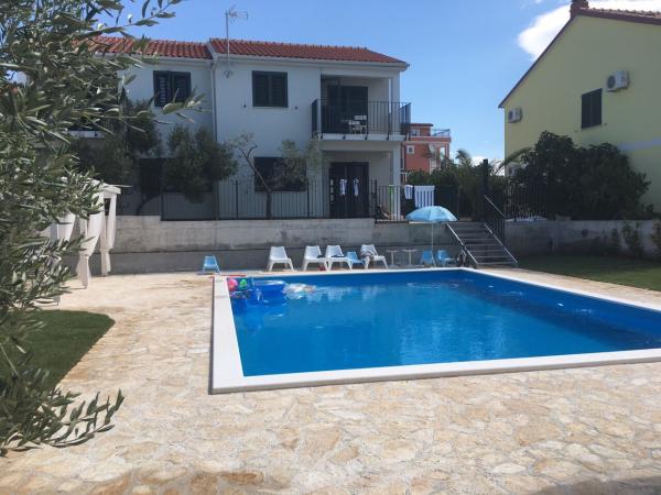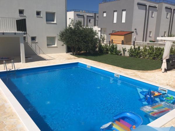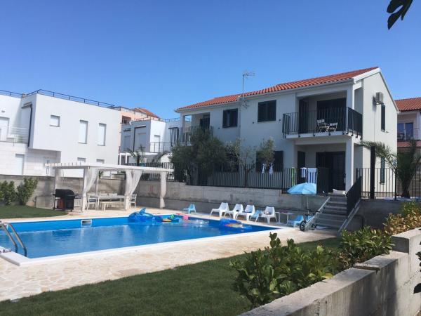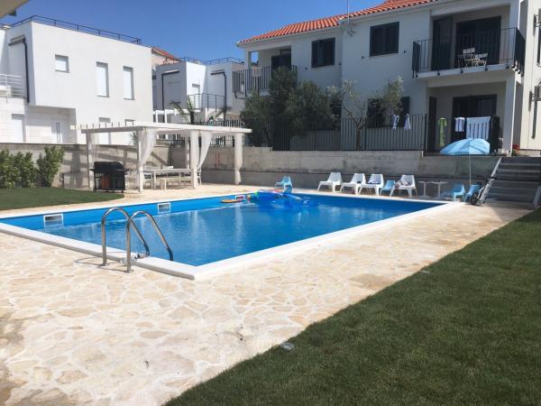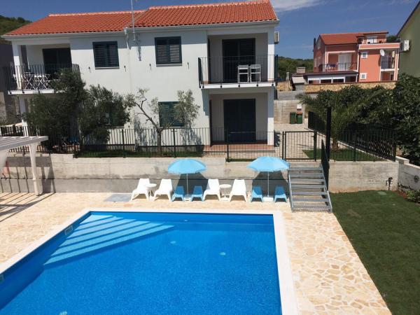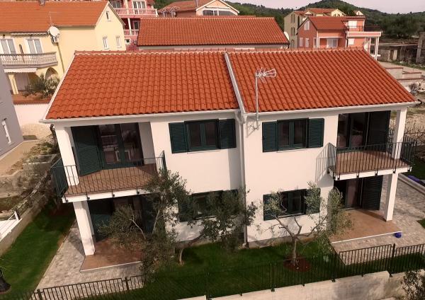 Plně vybavené a moderní nové apartmány v klidné části Tribunj, v blízkosti města, ideální pro bezstarostnou dovolenou. Apartmány jsou ideální pro dva, ale může pohodlně ubytovat až čtyři hosty. Apartmány jsou plně vybaveny vším, co potřebujete pro bezstarostnou dovolenou - z kuchyně, koupelny, pračkou, myčkou na nádobí, ložní prádlo, ručníky a venkovní společný prostor s bazénem, lehátky, grilem a zahradní kuchyní. Vzhledem k rozdělení jednotek (dvě samostatné jednotky, z nichž každá se dvěma byty v každém), vhodné pro rodiny nebo společnosti 8 členů, kteří mohou zůstat ve stejné jednotce se stejným vchodem ve dvou samostatných apartmánech. Je možné si pronajmout celý dům, který může hostit 16 lidí. Apartmány se nachází jen pár minut chůze od centra Garade, ve kterém na trhu, obchody, lékárna, zdravotní středisko, kavárny, restaurace, park a Marina, a 7 minut chůze od krásné pláže Tribunj. Oblast Tribunja je fantastické, protože jeho umístění, protože se nachází v blízkosti města, Šibenik,