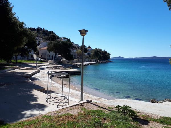 Prostorné, nově zrekonstruované byty v klidné části Tribunj, daleko od pláže Zamalin 3 min. pěšky a 10 min. chůze do centra města Tribunj. Oba apartmány jsou umístěny na patře a mají velké balkony (velký apartmán pro 5 osob a terasou 35m2 na přední straně, malý byt 2 1 25 m2 terasa se zadní stranou). Parkování ve dvoře.