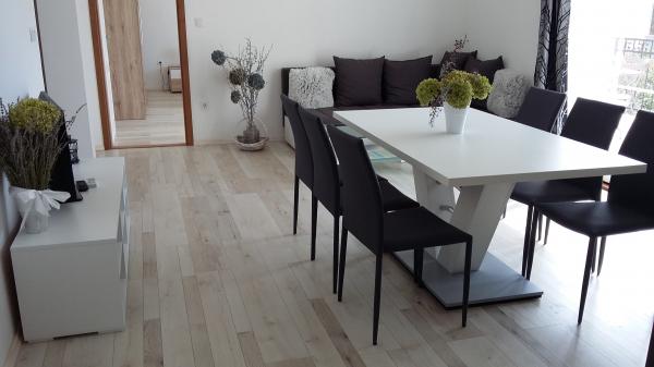 Apartmány "OAZA MIRA" se nacházejí v soukromém, rodinném domě, 3 apartmány o kapacitě od 4 do 18 osob. Obklopena zelení a květinami, svátky pro oči a uši. Zde spíte a ptáte se. Apartmány nabízejí 65 m2, dva jsou dvoulůžkové (galerie s ložnicí asi 20 m2) Všechny apartmány mají dvě ložnice, jídelnu, plně vybavenou kuchyň, kde najdete vše, co potřebujete (mikrovlnná trouba, toustovač, trouba, kávovar, pračka), velké koupelny. Apartmány jsou prostorné a klimatizované. Bespaltní internet (wi fi), tv-sat. Všechny apartmány mají terasu nebo balkon s výhledem na moře, zahradu a kopce. Bezplatné soukromé parkoviště je k dispozici na místě a nevyžaduje se žádná rezervace.