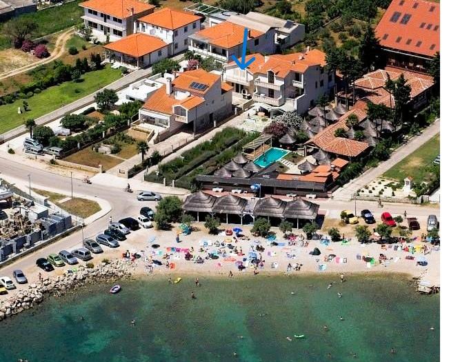 Samostatná budova se dvěma stejnými apartmány v přízemí s kuchyní a koupelnou, zatímco v patře jsou ložnice s výhledem na moře a terasou na opalování. Zařízení je v klidném a tichém prostředí u moře a jen 50 metrů chůze od pláže. Na pláži si také můžete pronajmout slunečníky a lehátka. Apartmány mají vlastní vchod s hlídaným parkováním. Apartmány jsou ideální pro dvě rodiny, které chtějí společně strávit dovolenou. Za pouhých deset minut chůze jste v samém centru města, kde jsou obchody a restaurace. Moje obrázky jsou trochu zastaralé (omlouvám se), protože jsou zde nové postele, pohovka a TV s plochou obrazovkou. Měl jsem hosty, kteří se ke mně vraceli od 10 do 16 let.