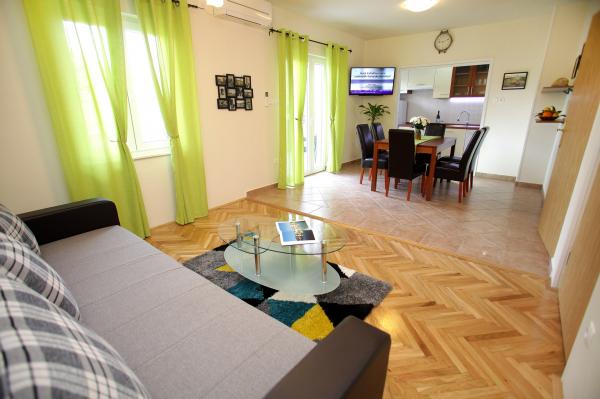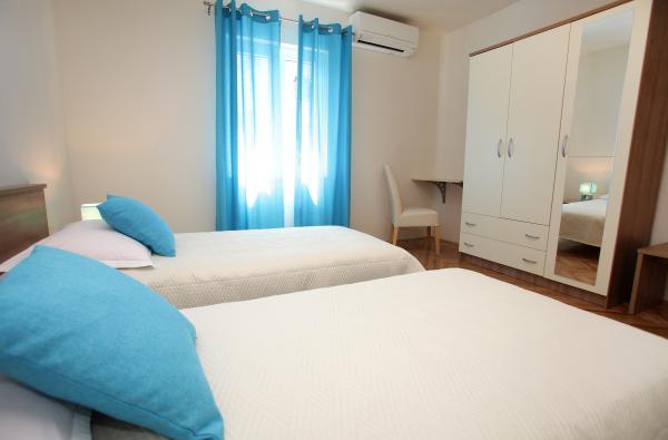 Byt Biočić se nachází v klidné části ostrova Čiovo, ale jen 5 minut chůze od centra města. Na pláži je 10 minut chůze od domu, a je zde možnost mnoha dalších pláží a to buď autem jakýmkoli taxi lodí, které se odchylují každou hodinu v blízkosti objektu. Byt o 90 m2 20 m2 terasou, nabízející komfortní ubytování pro 6 osob. Dvě ložnice, obývací pokoj, jídelna a kuchyň a prostorná terasa poskytne vám vše, co potřebujete pro pobyt v blízkosti pohodlné do města, ale daleko od hluku města. Byt je plně klimatizovaný (každý pokoj má vlastní klimatizaci) a jsou vybaveny všemi potřebnými domácích spotřebičů (pračka, myčka, mikrovlnná trouba, chladnička s mrazu, kávovar, žehlička, trezor, TV a Wi-Fi nevyhnutelné), takže si můžete opravdu cítit doma. Parkování je možné přímo u objektu, stejně jako soukromé kotviště nedaleké (zdarma pro pobyty na 7 dní a déle).