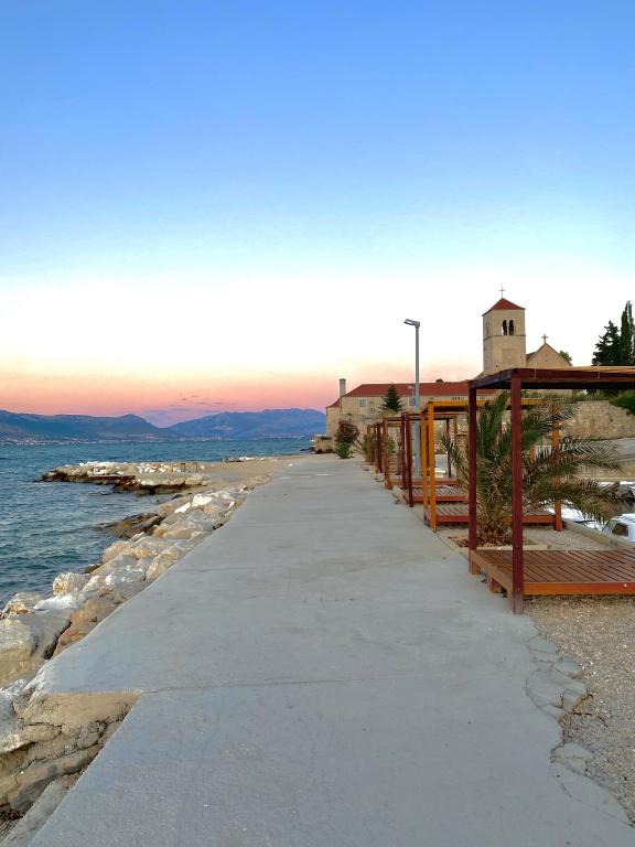 Apartmán Bubble se nachází v Mastrinca - Trogir (ostrov Čiovo) v malé budově, jen 5 minut chůze od moře (do kopce 250 m) a pláže, kde najdete spoustu stínu. Také pláž má spoustu vybavení (kavárny, nafukovací čluny v moři atd.). Byt se skládá z ložnice, koupelny, obývacího pokoje a kuchyně a také soukromé, malé, oplocené zahrady (30m2), kterou si můžete užívat po celý den a za příjemných letních nocí. Byt je klimatizovaný a plně vybaven veškerým potřebným zařízením (kávovar, varná konvice, toustovač...), včetně zabudovaného vodního filtru. Host má zajištěné parkovací místo přímo před vchodem do objektu. Neomezený internet, smart TV. Přenosná dětská postýlka na vyžádání. Domácí zvířata povolena (za příplatek)