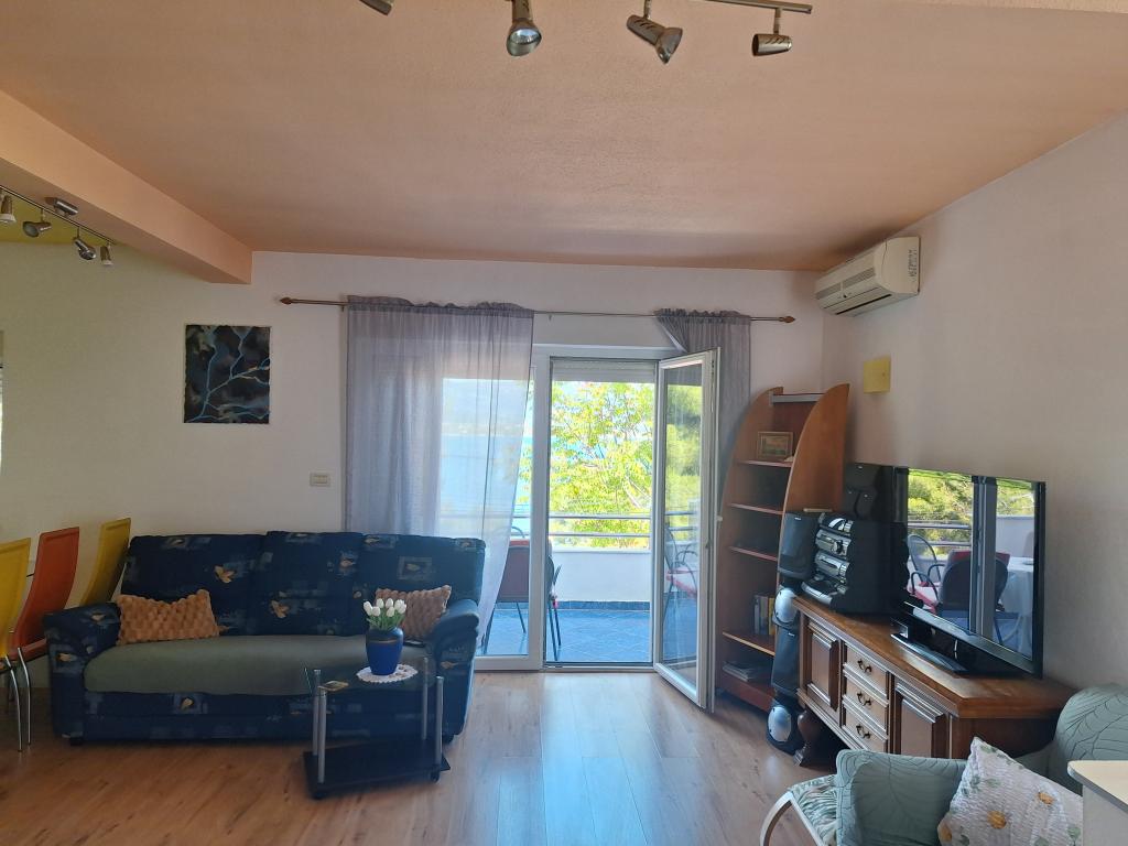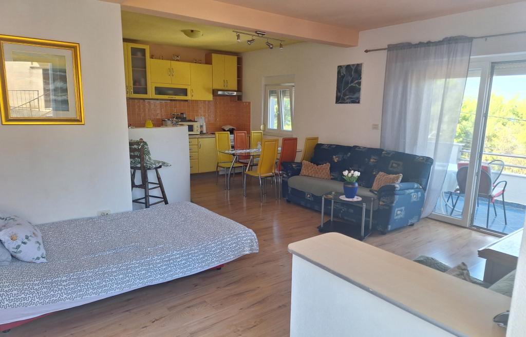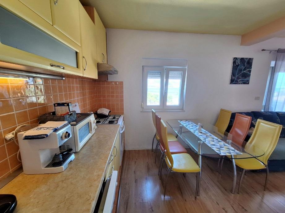 Laura Byt je zcela nový, luxusní byt pro 6 osoba.Nalazi v klidné a zelené podrucju.Velicina 80 m2, a balkon je 8 m2.Apartman se skládá z jedné ložnice s manželskou postelí, jeden třílůžkový pokoj, velká koupelna, prostorný obývací pokoj s 1 lůžkem, plně vybavenou kuchyň a balkon s krásným výhledem na klime.Spavace sea.Apartman má dva pokoje jsou plně vybaveny skříňkami, ložní prádlo a rucnicima.Kupatilo má jacuzzi vanu a sprchový kout kadu.Dnevni pokoj má TV, DVD, pohovka, dvě křesla, a komodu.stol stolice.Kuhinja lednice, trouba, mikrovlnná trouba, kávovar, pračka se sudje.posudje a příslušenství jelo.Apartman je plně vybavena vším, co potřebujete pro příjemnou boravak.Iza Dům je bezplatné parkoviště pro 2 auta.Ima 1 minuta chůze na krásné oblázkové pláže, která je obklopena borovým sumom.Udaljenost od apartmánů do města v 1500 metara.Najblizi obchodě je 500 metrů od hotelu.