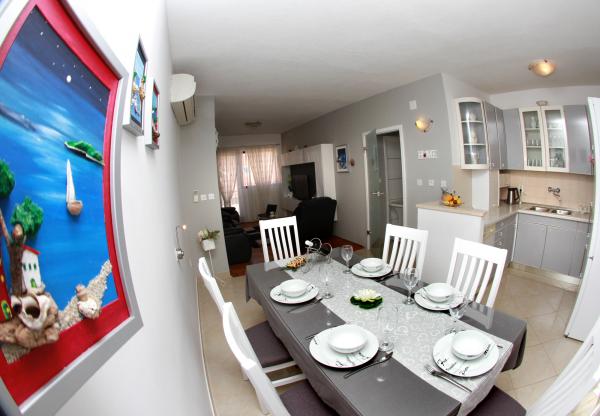 Apartmány Nikola se nacházejí na klidném místě Mastrinka na ostrově Čiovo. Všechny apartmány jsou plně vybavené a moderně a luxusně nově zařízené a majitel je vám k dispozici 24 hodin denně. Apartmány se nacházejí 50 metrů od moře a kaváren a 200 metrů od restaurací, tenisových kurtů a dalších dalších zařízení na moři, ideální pro rodinnou dovolenou. Oba apartmány mají krásný výhled na moře. Cena zahrnuje pobytovou taxu, wi-fi, klimatizaci a parkování.