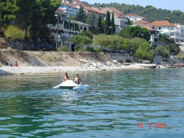 Bylo to moc krásně strávených 14 dní v Apartmánu u rodiny Maravic. Děkujeme za milé přivítání a starání se o nás v době pobytu. Byli jsme hoštěni rybami, vínem, fíkami a jinými dobrotami. Apartmán byl moc pěkný, nový, čistý, dostatečně vybavený. Rodina Maravic jsou velmi přívětiví lidé. Bylo nám tam moc dobře. Doporučujeme! Moře je vzdáleno jen pár metrů od domku, ale i všude v okolí jsou oblázkové pláže a možnost koupání. Trogir je krásné městečko, vzdálené jen 3 km. Lodí je možno udělat výlet do Splitu i na jiná krásná místa.