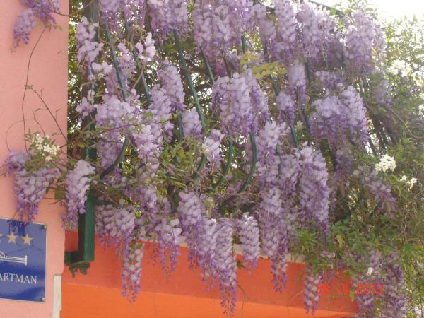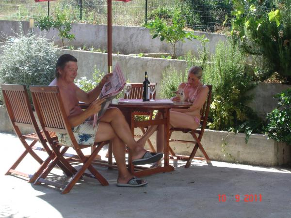 Byt byl velmi pěkný, moderní a prostorný. Zahrada se stromy a květinami nabízející stín a příjemné posezení na venkovní terase Hostitel byl opravdu vstřícný, při příjezdu na nás v lednici čekalo víno a šunka a později nás čekal překvapivý oběd - místní ryby vyráběné hostitel. Tento byt můžeme jen doporučit.