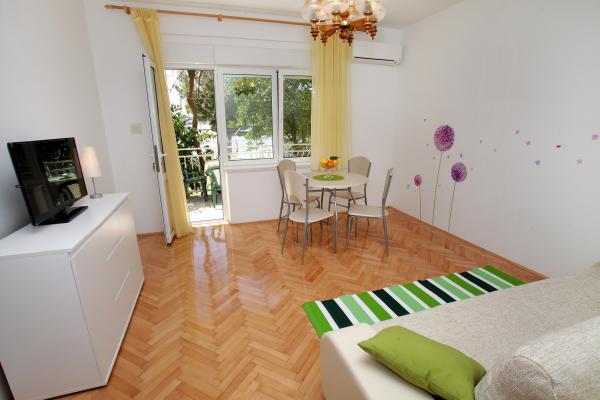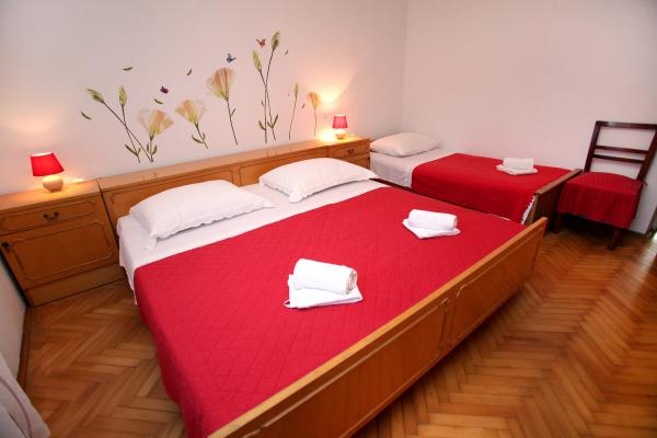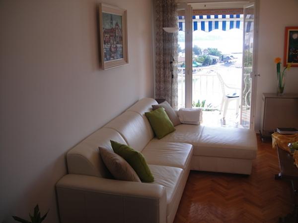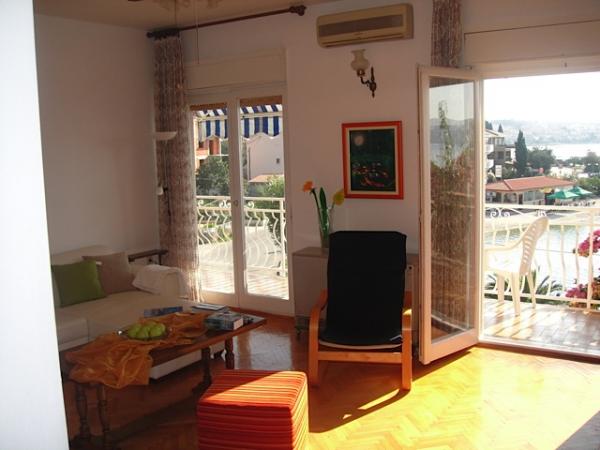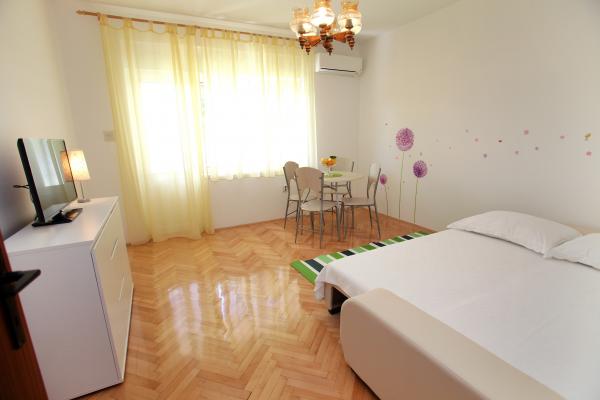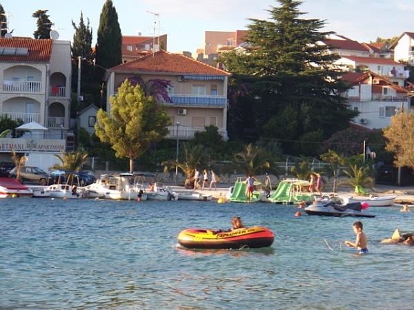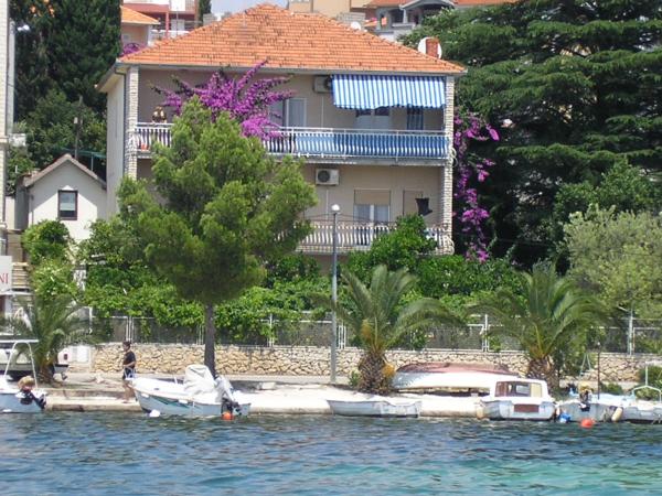 Apartmány a pokoje jsou umístěny v Okrug Gornji na ostrově Čiovo, 2 km od centra města. Ty se nacházejí v blízkosti písečné pláže, velmi cenově dostupné pro děti a rodiny s dětmi. Všechny apartmány mají výhled na moře a jsou vybaveny vzduchu-klimatizace a bezdrátové připojení k internetu a parkovací místo. Dům má kotviště pro člun až asi 7 metrů, s doplatkem. Hosté mohou využívat zahradu a domov, stejně jako gril.