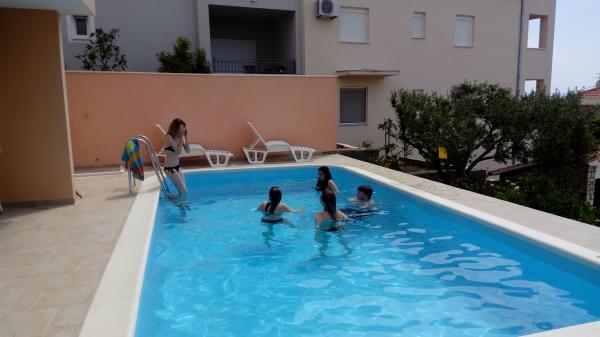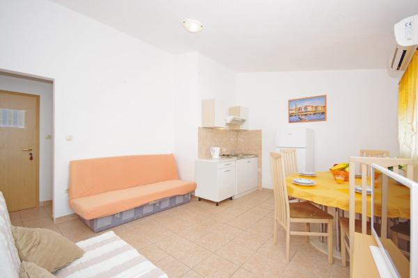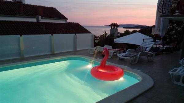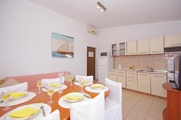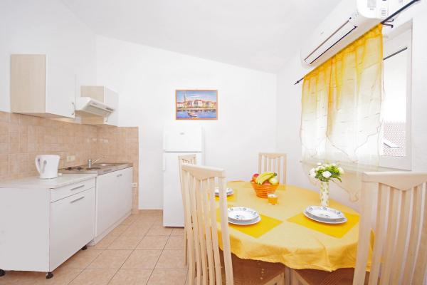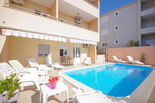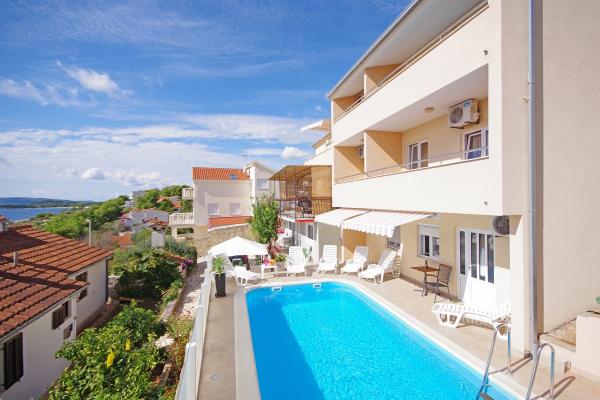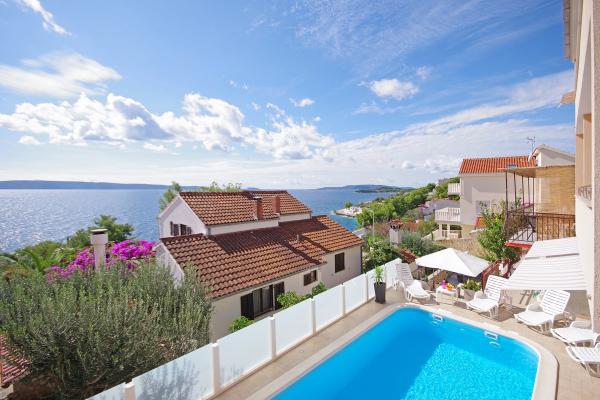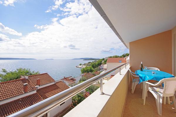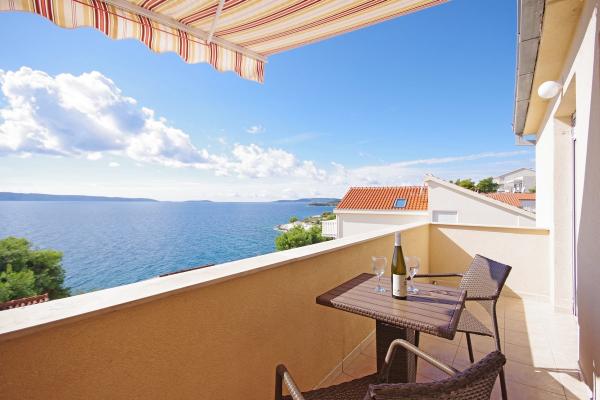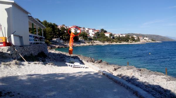 Apartmány jsou situovány v klidné zátoce na jižní straně ostrova Čiovo, na druhém místě k moři a všechny s výhledem na otevřené moře. Na krátké vzdálenosti od domu restaurace s pláží a sportovní hřiště a zátoku i nadále téměř nedotčené přírody, přírodní pláže a borové lesy. Na druhou stranu, budete mít všechny potřebné městských zařízení a noční život se nachází v centru, které má spoustu kaváren, restaurací a krásná promenáda. Zvláštní výhodou je blízkost Trogiru, který je památkou plné historických památek.