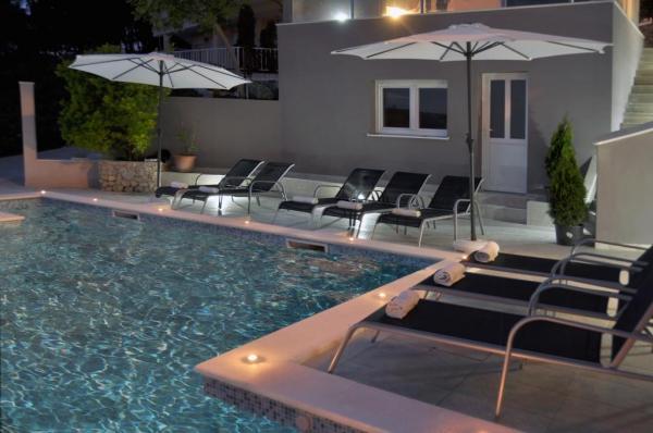 Bonaria Apartmány se nachází na vyvýšeném části ostrova Čiovo, Balan, v moderním domě renovovaný v roce 2014. Rodinný dům má pět luxusní apartmá s balkonem, velký bazén, parkoviště, venkovní gril a uspořádány dětským hřištěm u bazénu. Na sever, obklopen tichem hustého borového lesa na jihu otevřené krásným výhledem na moře a krásné západy slunce. Z historického města Trogir je jen 700 metrů od letiště Resnik se nachází 5 km od města Split 25 km. Na ostrově Čiovo tam jsou četné pláže, z nichž nejznámější pláže Saldun, s výhledem na přístav a četné denní i noční aktivity, jako je plážový bar, vodní sporty a potápění. Myslíte si chcete užít klid a zvuk vln vybrat některý z menších, tišších pláží roztroušených po celém ostrově, daleko od davů.