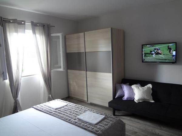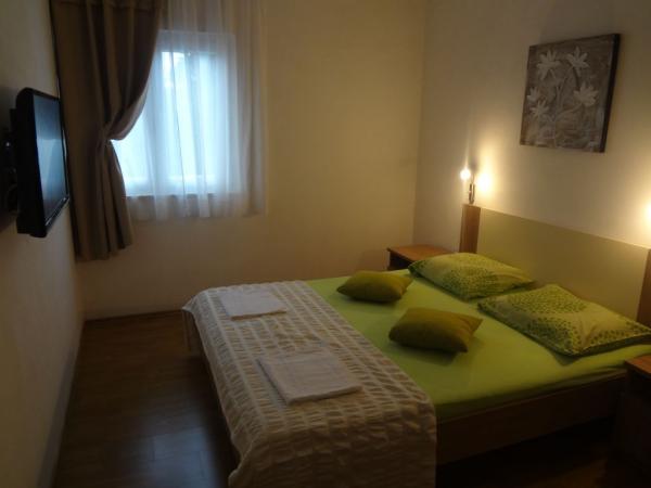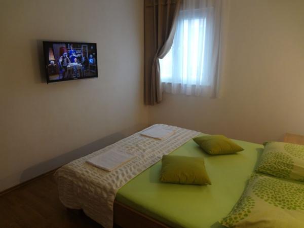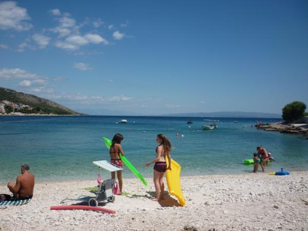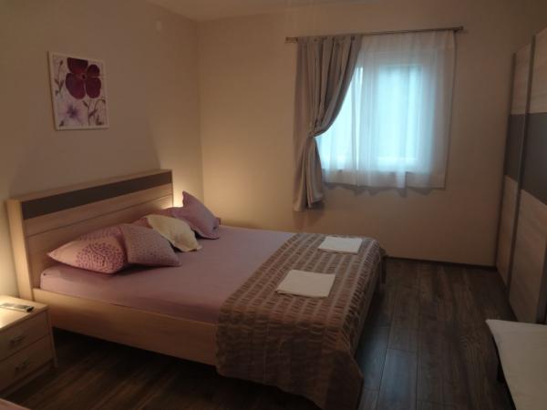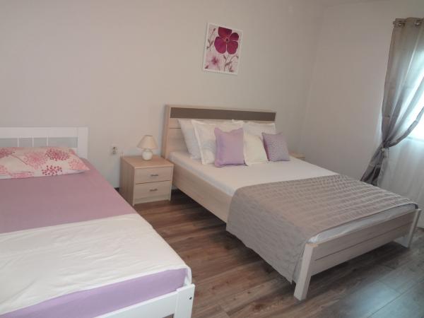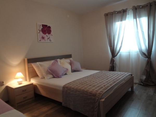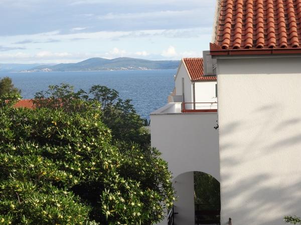 Nabízíme dva apartmány (tři hvězdy). Oba apartmány jsou v prvním patře. Byt A3 +1 má dvě ložnice a jeden rozkládací gauč v obývacím pokoji, apartmán A2 +2 má jednu velkou místnost s manželskou postelí, samostatným lůžkem a rozkládací pohovkou. Oba apartmány mají manželskou postelí, dobře vybavená kuchyň, velká lednice, koupelna, parkoviště, klimatizace, venkovní sprcha, gril a terasa. Okrug Gornji se nachází na ostrově Ciovo, který je spojen s pevninou. Takže to je vlastně ostrovem i pevninou zároveň. Můžete cestovat bez jakéhokoliv poplatku do pevniny, nebo v jakémkoli jiném městě se svým autem přes most, který je otevřený 24 hodin denně. Od Okrug Gornji, můžete jít do Trogiru autem, autobusem a lodí. Trogir je 2-4 km od Okrug Gornji a Split je jen 27 km od resortu. Okrug Gornji je známý pro své křišťálově čisté moře a 2 km dlouhá oblázková pláž Copacabana. Trogir, původní nedotčená příroda, to je pro jogging velmi atraktivní.