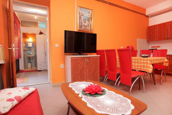 Nový moderní byt o 85 m2, který se nachází v rodinném domě v klidné části ostrova Čiovo, 500m od pláže a je ideálním místem pro letní dovolenou rodiny s dětmi. Byt se skládá ze dvou ložnic (16 m2, 16 m2), se čtyřmi přistýlkami, kuchyň, obývací pokoj, dvě koupelny vybavené sprchovým koutem a prostorné nádvoří s ochranou proti slunci. Na dvoře je parkovací stání pro dvě auta a grilem. Byt má klimatizaci (bez příplatku), bezplatné Wi-Fi, možnost dětské postele a židle pro krmení dětí, satelitní TV (plazma). Pračka je zahrnuta v ceně, pevnou linku telefonu pro nouzové volání, kávovar, mikrovlnná trouba , atd.