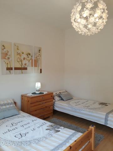 Rodinný dům v Trogire s krásně zařízenými apartmány. Jsou jen 5 minut chůze od historického jádra města. Městská pláž je jen pár minut chůze od apartmánu. Pohodlné a plně vybavené. Každý apartmán má balkon / terasu, kde si můžete vychutnat venkovní jídlo nebo si dopřát opalování v soukromí vašeho bytu. Apartmány mají vkusně zařízené interiéry, plně vybavené, klimatizované, s bezdrátovým internetem a zabezpečeným parkováním ve dvoře. Jsou velmi výhodné, protože díky blízkosti centra města je možné navštívit Trogir bez použití automobilu, což je velmi důležité vzhledem k dopravní zácpě, které lze v letních měsících znát. Letiště se nachází 3 km od apartmánu, a pokud chcete jet do Splitu, můžete jet lodí z Trogir a znovu se vyhnout davům jak v Trogiru, tak ve Splitu.