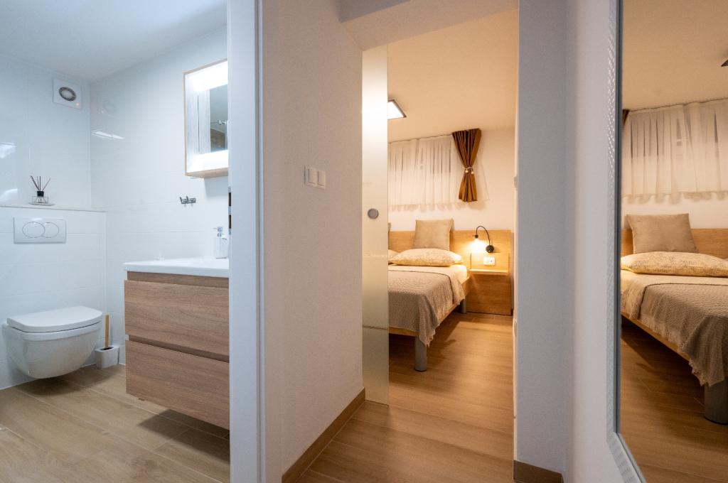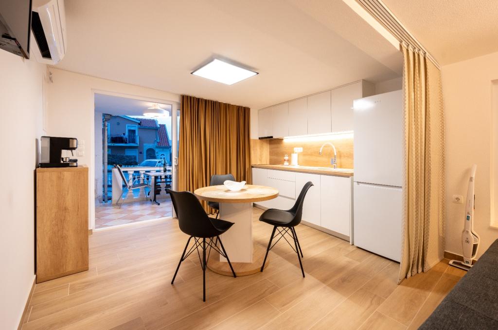 Velmi čistý a plně vybavený byt... Od žehličky po fén. žehlicí prkna pro 2 TV. klimatizace, sady nádobí. Lednička. mikrovlnná trouba, myčka. 2 různé kávovary. Studená voda na uvítanou v lednici, ovoce na stole. Rakija s hostitelem. Perfektní dovolená. Majitelé byli velmi milí a ochotní. Dovolená zde byla perfektní. V blízkosti moře, do obchodu, do starého města v Trogiru přesně 3 km. Skvělá lokalita. doporučuji