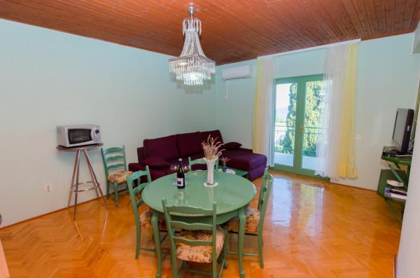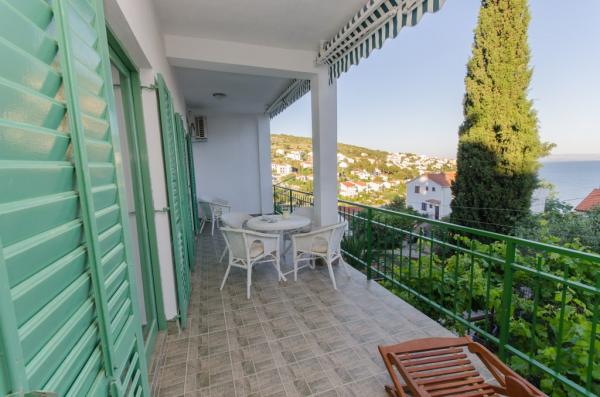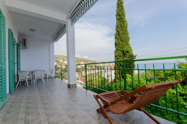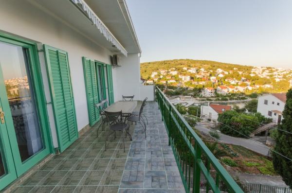 Pohodlné a prostorné apartmány v zátoce Mavarčica, Trogir, obklopené zelení s prostornými balkony a terasami na jih na západní straně a parkoviště.