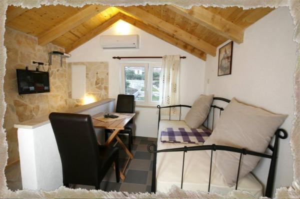 Celý koncept našeho rekreačního domu je navržen jako malý, magické oázy. Ještě jsme usiloval o hmotné představení, ani jsme charakter domu chce zastínit a podkopat nádhera a moderní technologie. Vzhledem k historii místa, které je století starý, historie řekl stěnami, i když jen trochu fit, zhluboka se nadechl a odejít, věřte nám, budete slyšet, co se mluví, a to, co chcete říct. U všech těchto okolností, chtěli jsme zachovat původního ducha místa, domu, jste právě tolik, kolik budete potřebovat pro pohodlný pobyt, na druhou stranu se vám podaří dýchat starý duch místa, cítit vítr, vůni moře, lesy, skály a úlomků. Vzhledem k tomu, že je to všechno Dalmácie, Seget a její dokonalý malý neporušený srdce. Kouzlo a zvláštní kouzlo umístění našich domů je to, že jste chráněni ve struktuře obce Okrug, který leží mezi čtvercovými věžemi. A po několika metrech přes vinutí, staré, město ulice se ocitnete v centru obce, kde se nacházejí restaurace, kavárny, pláže, atd