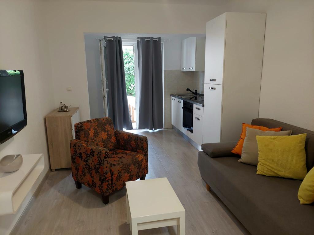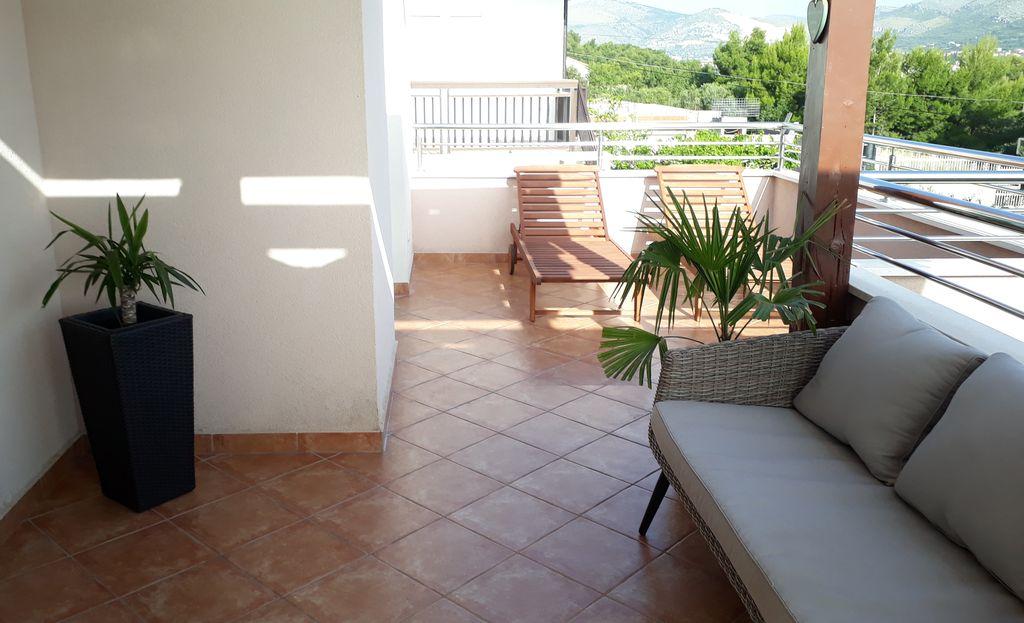 Apartmány se nacházejí na ostrově Čiovo, 2 km od centra krásného města Trogir. Jsou umístěny v soukromém domě a 20 metrů od pláže. Uvnitř budovy je soukromé parkoviště. V blízkosti je autobusová zastávka a taxi.