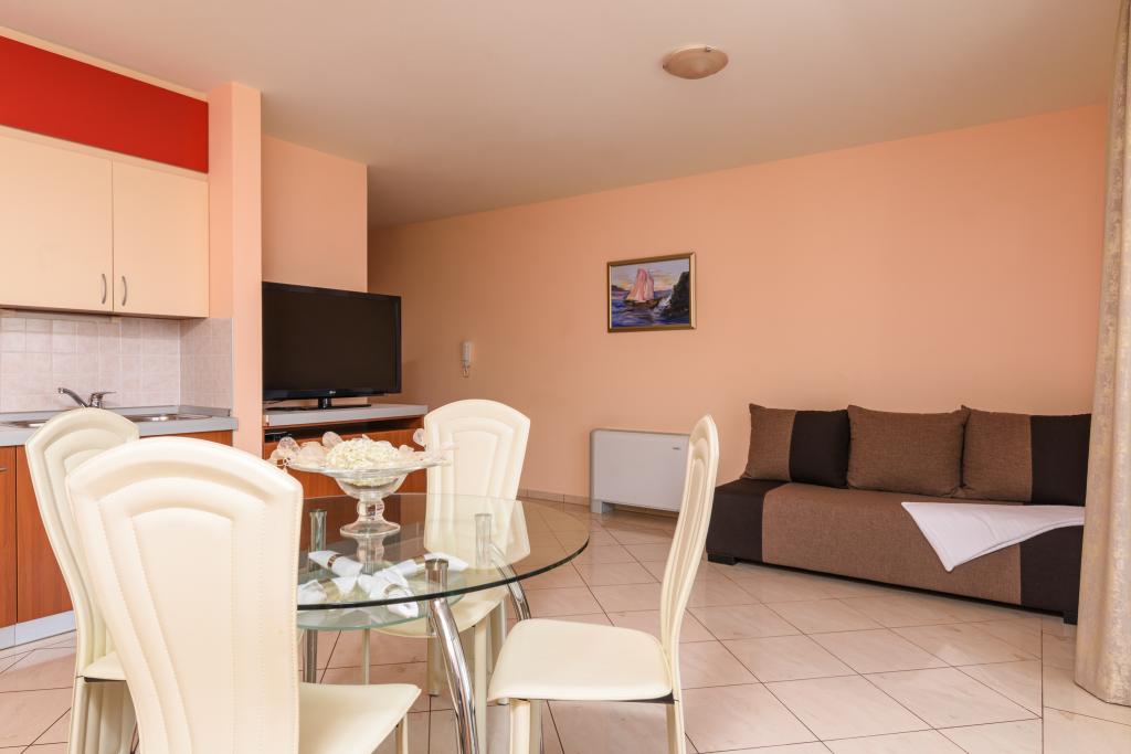 Pobytová taxa je v ceně.Apartmán A2 typ 2 (51 m2) - velký obývací pokoj s kuchyňským koutem a jedním lůžkem pro dvě osoby, jedna ložnice s manželskou postelí, koupelnou a balkonem (12 m2). Apartmán typ / studio apartmán A2 1 (30 m2) - obývací pokoj s kuchyňským koutem, manželskou postelí, rozkládací pohovka razvalčenje jedním lůžkem, koupelna a balkon (6,5m2). Apartmán typ / studio apartmán A2 (26 m2) - obývací pokoj s kuchyňským koutem, manželskou postelí, koupelna a balkon (6,5m2). Všichni naši hosté mohou využít gril s dřevěným pecí se nachází v zahradě a nyní oběd a večeře do pozdějších hodin v naprostém soukromí. Pro všechny hosty je k dispozici soukromá prakig před domem.