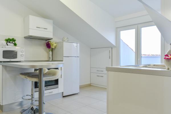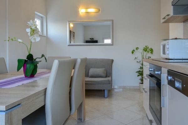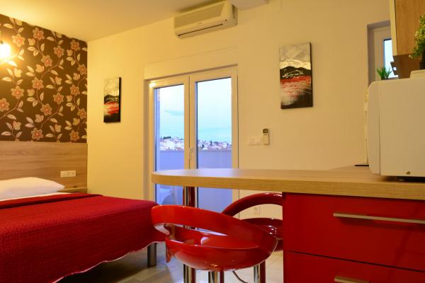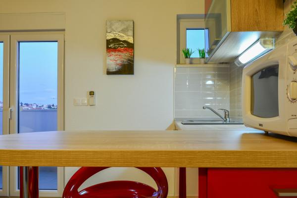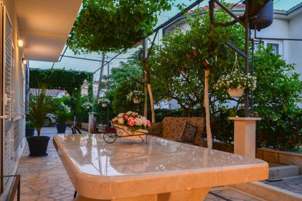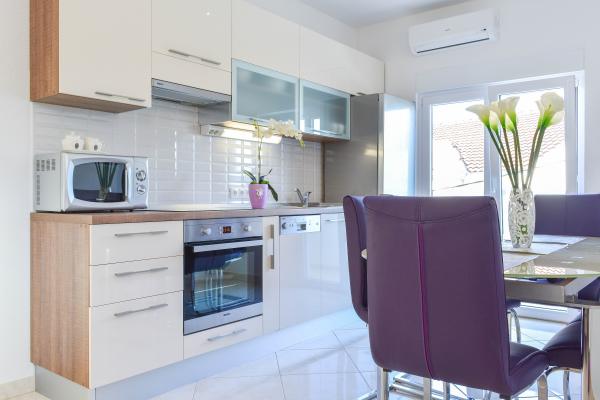 Luxusní apartmány Villa Tea se nachází jen 50m od pláže v horní kraj a 1, 5 km od Trogiru. Na letiště je pouhých 5 km. Pro hosty je k dispozici bezplatné parkování a bezdrátové připojení k internetu. Všechny apatmani mají balkon s výhledem na moře a plně vybavenou kuchyň s myčkou na nádobí, mikrovlnnou troubou a rychlovarnou konvicí. Studio apartmány a každá ložnice a obývací pokoj v bytě je vybaven TV se satelitním příjmem a klimatizací. Koupelny jsou vybaveny sprchou, vysoušečem vlasů a toaletní potřeby. Žehlička a žehlící prkno jsou k dispozici na vyžádání. Apartmány se skládají ze dvou ložnic s je k dispozici jako přistýlkou v obývacím pokoji pro dvě osoby koupelna v každém pokoji. V blízkosti se nachází různá sportovní zařízení jako je pronájem vodní lyže, paragliding a také možnost lodní výlety. Pláž je vhodná pro děti s mini aquaparkem