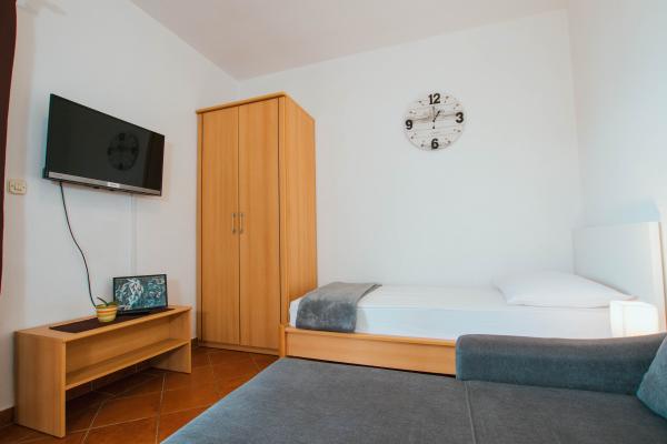 Apartmány Sara se nachází na ostrově Čiovo, 3000 metrů od centra města Trogir v Mastrinka -Arbanija. je umístěn ve dvou-rodinném domě. ve větším kamenném domě je skvělá aplikace pro 7 osob, a v menší 3 app pro 12-15 lidí. Vzdálenost od moře je 20 metrů. pláž je vhodná pro děti i dospělé, protože tam má spoustu přírodního odstínu. Pláž je oblázková a částečně betonová. moře není hluboké a je vhodný pro děti. Vše, co chcete klást žádné otázky budou zodpovězeny způsob, jakým pošty díky fam. Belas Rezervace v červenci a srpnu, soboty do soboty nebo neděle Sunday- APP A7 má 3 ložnice APP 4 2 místnosti APP 4 1 2 pokoje APP 4 1 má 1 ložnici