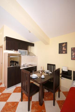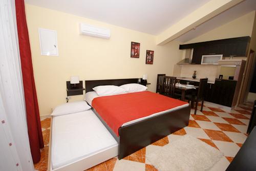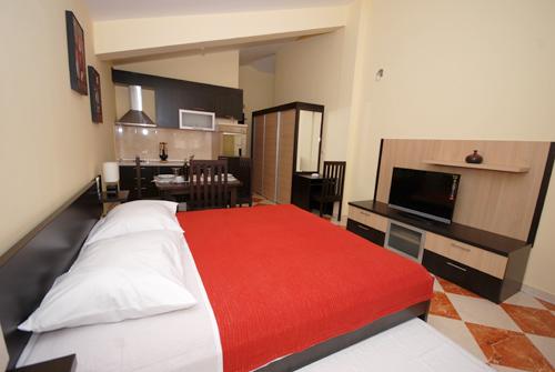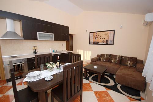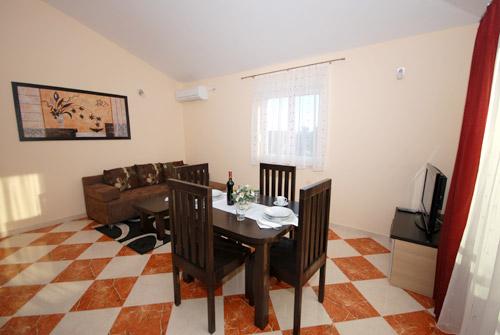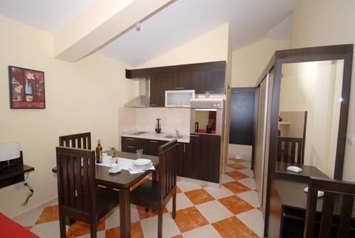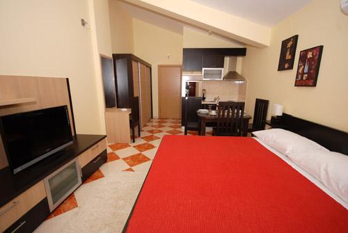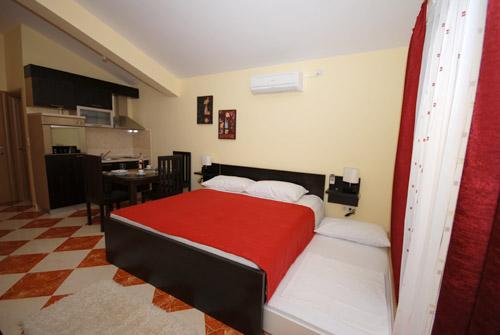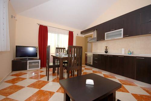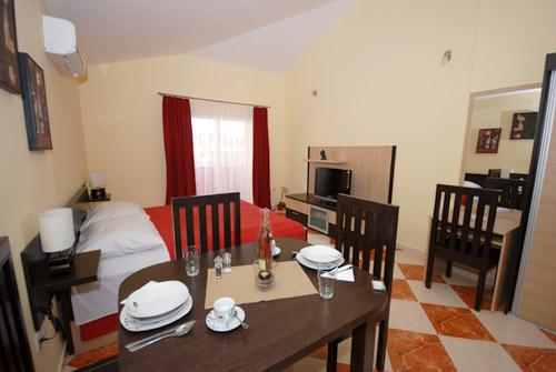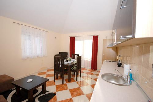 Apartmán 1 (4 +2) Velikost bytu je 60 m2 + 60 m2 balkon. Byt má dvě dvoulůžkové ložnice, koupelna a obývací pokoj s velkou kuchyní. Kuchyň je vybavena troubou, ledničkou. V obývacím pokoji je velká rozkládací pohovka pro 2 osoby, stolem a židlemi, TV / SAT, klimatizace, bezdrátové připojení k internetu. Apartmán 2 (2 +2) Velikost bytu je 35 m2 + 7 m2 balkon. Byt má jednu dvoulůžkovou ložnici, koupelnu a obývací pokoj. Kuchyň je vybavena troubou, ledničkou. V obývacím pokoji je stůl a židle, TV / SAT, klimatizace, bezdrátové připojení k internetu. Apartmán 3 (2 +2) Velikost bytu je 35 m2 + 7 m2 balkon. Byt má jednu dvoulůžkovou ložnici, koupelnu a obývací pokoj. Kuchyň je vybavena troubou, ledničkou. V obývacím pokoji je stůl a židle, TV / SAT, klimatizace, bezdrátové připojení k internetu.