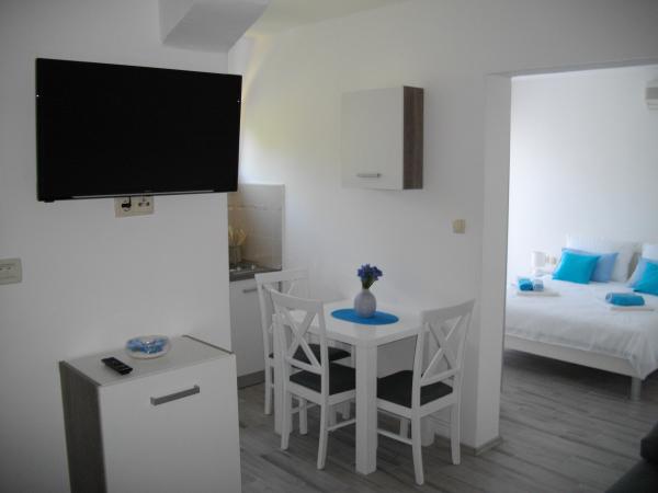 Studiové apartmány Goga je zajištěno ve starém centru města, v tichém a klidném místě v centru města Trogir, ve druhém patře s výhledem na památky a moře. Apartmány jsou moderně a plně vybavené. Nabízíme dva apartmány. Oba apartmány jsou klimatizované a vybaveny LCD TV, TV se satelitním příjmem a Wi-Fi. Parkování pro všechny hosty je zajištěno zdarma. Doufáme, že si vyberete naše apartmány pro vaši dovolenou v Trogiru a dáme v našich silách, aby vaše dovolená nejlépe je to možné.
