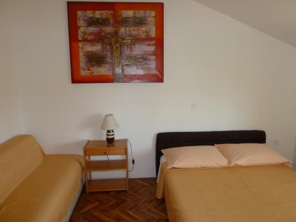 Apartmány Tomic se nachází v rodinném domě se nachází na ostrově Čiovo v Mastrinka, v blízkosti kláštera sv. Cross. Historické město Trogir se nachází ve vzdálenosti 3 km. Pláž je jen 2 minuty chůze od domu av něm je několik kaváren a barů. Supermarket se nachází jen několik minut chůze od bytu a je kompletně vybaven všemi náležitostmi. Dům má vlastní parkoviště a velkou zahradu a přízemí a 2 patra. Na každém patře je jeden apartmán typu 3 +2 a 2 +2 typ. Apartmány mají jednu ložnici, koupelnu, kuchyň a obývací pokoj s terasou. Kuchyň je vybavena všemi potřebnými nádobím pro ukládání jídel. Všechny apartmány jsou klimatizované, satelitní televize. Vzhledem k výjimečné ubytování v klidné lokalitě, ale blízko kulturních a zábavných akcí, Tomic Apartmány jsou ideální volbou pro ty, kteří hledají klidnou dovolenou na pláži, ale i pro ty, kteří hledají aktivnější dovolenou.
