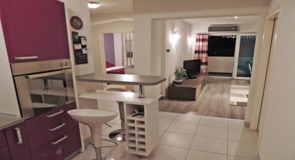 Plně vybavené a moderní byt, jen 100 m od centra města. Byt má jednu ložnici s manželskou postelí, koupelna, moderní kuchyň a obývací pokoj s rozkládací pohovkou, kde je přístup na slunnou terasu. V bytě je také soukromé parkoviště a nachází se 300 m od nově zrekonstruované městské pláže, kde je oplocené dětské hřiště pro děti, jako součást kavárně.