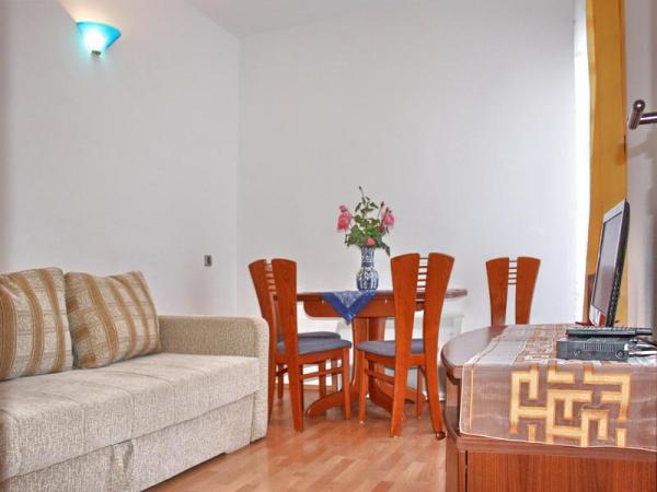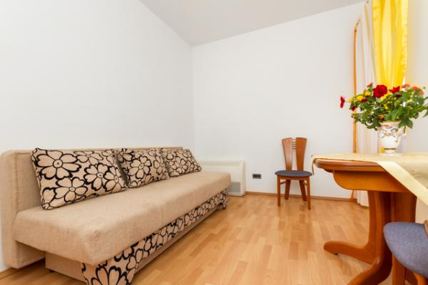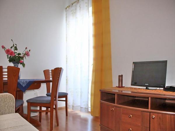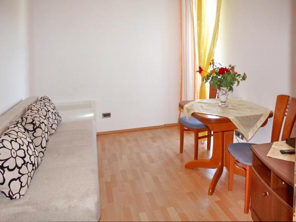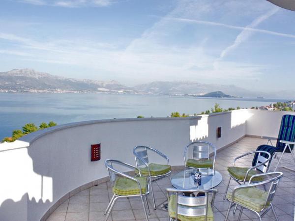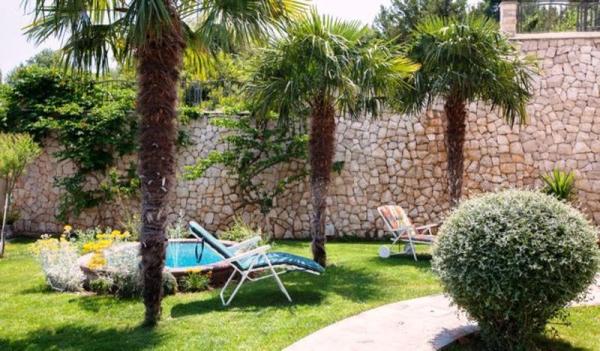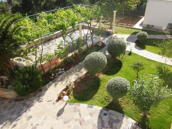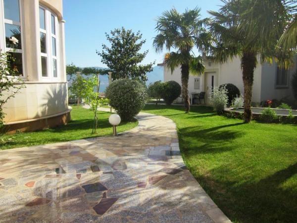 Vila (750 m2), je obklopen palmami, květinami a jinými rostlinami Gentile meditterian v krásné zahradě. K dispozici je velká zahrada 650 m2; s fontánou, paluba, gril a místo pro jídelní stůl. Dohromady má 1250 m2. Klidné, borové lesy a nádherný výhled na Jaderské moře, spolu s možností lenošit na prostorné terase je tato vila je skvělým místem pro odpočinek, protože se nachází jen 70 m od pláže (kousek). Rybí restaurace s místními specialitami, dva masa restaurace, pizzerie, na pláži koktejl bar, velký supermarket s ovocem a zeleninou a všechny potřebné ingredience jsou i 70 až 100 metrů. Apartmány jsou čtyři hvězdy (****). Villa Gloria má malé wellness Nabízíme také malou posilovnu s posilovacími stroji