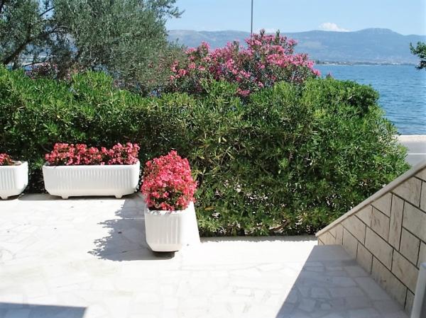 Vítejte! Ujistěte se, že krásu Dalmácie, v apartmánech Villa "Iva", který se nachází v blízkosti moře (10 m). Máme čtyři apartmány, které jsou klimatizované a plně vybavené, s oddělenou ložnicí, koupelna, obývací pokoj s kuchyňským koutem a terasou, kde si můžete vychutnat nádherný výhled na Kaštela Bay. Parkování pro Vaše vozidlo je zajištěno v oploceném areálu, mohou hosté využít venkovní solární sprcha vedle apartmánů a gril. V blízkosti vily "Iva" a na pláži jsou zařízení s hotelem, stravování a komerční prostory (obchody, řeznictví, pekařství, restaurace ... se nachází až 100 m). Prozkoumejte perlu Středomoří staré město Trogir a Čiovo ostrov, si za průměrnou cenu kvalitní ubytování, nyní především podél pobřeží.