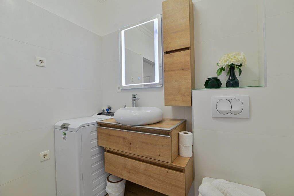 Jedná se o dům s byty tekskluzivna. To se nachází v atraktivní části města. Na jižní straně ostrova Čiovo (spojen mostem na pobřeží a krásné město Trogir (UNESCO)). Dům se nachází ve městě Mirnyi, od moře (pláž s borovicemi), asi 200m od atraktivní městské pláže v Okrug Gornji asi 700m. Vzdálenost od restaurací a obchodů byla dokončena 150m, nemocnice, pošta a všechna zařízení se nachází v centru města, která se nachází asi 15 minut. chůzi a asi 5 km od letiště Split (nabízené transfer z letiště po dohodě s majiteli). Dům má dva byty. Každý z nich je plně vybavené a mají nádherný výhled na moře. Jedním z nich je do kategorií se 4 hvězdičkami. Je umístěn v přízemí má terasu a dva balkony. 2 ložnice, obývací pokoj s rozkládací pohovkou, jídelním koutem a kuchyní a 2 koupelny. Vybaven plně (klimatizace, Wi-Fi, TV se satelitním příjmem, pračka, veškeré kuchyňské spotřebiče, soukromé parkoviště ... a. Druhý je kategorií s 3 hvězdy. Je prvním