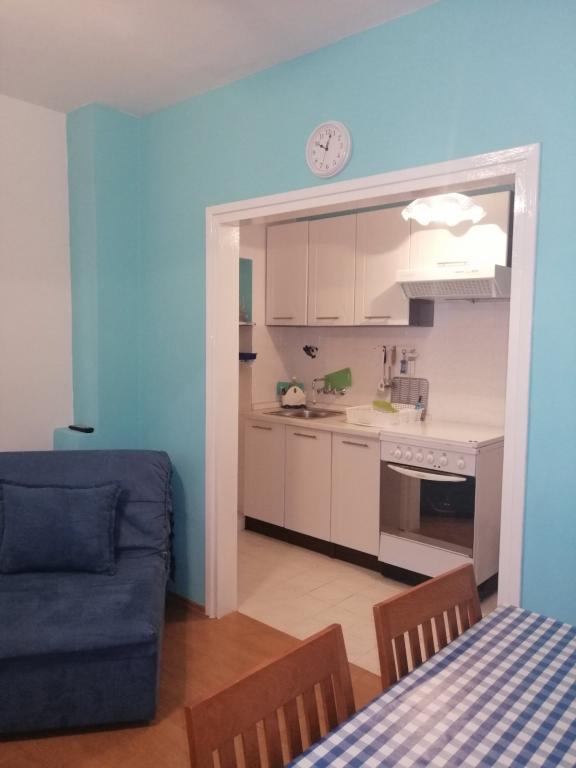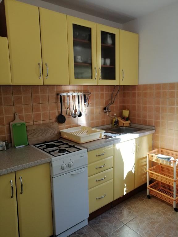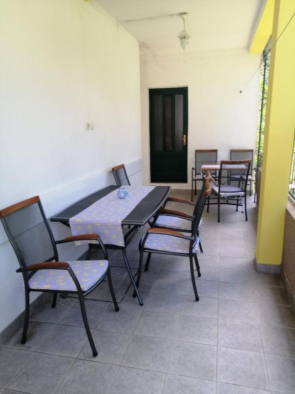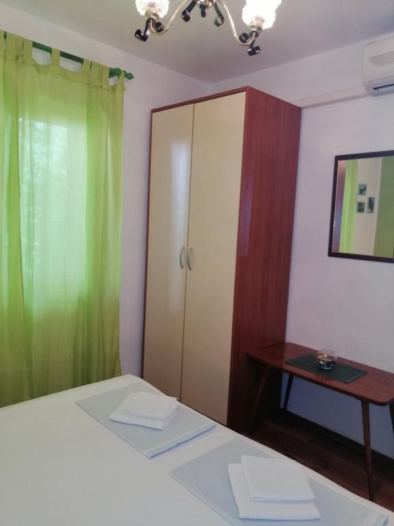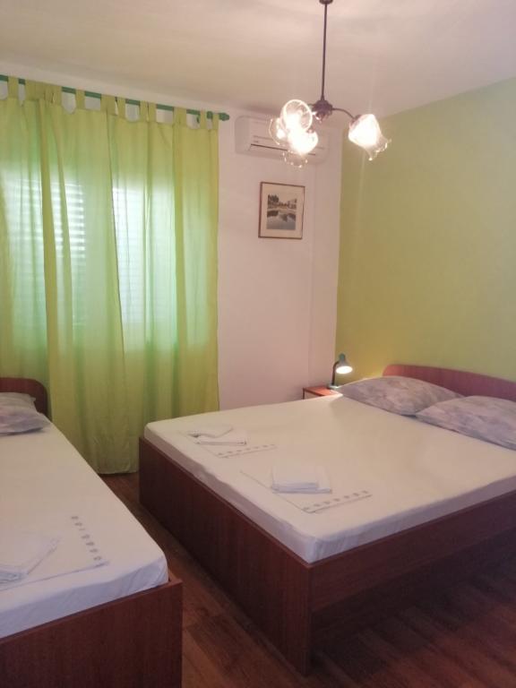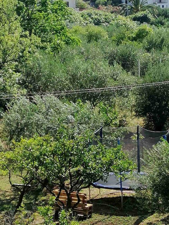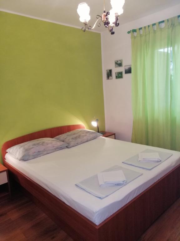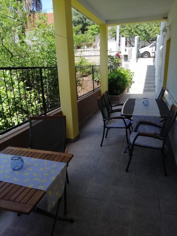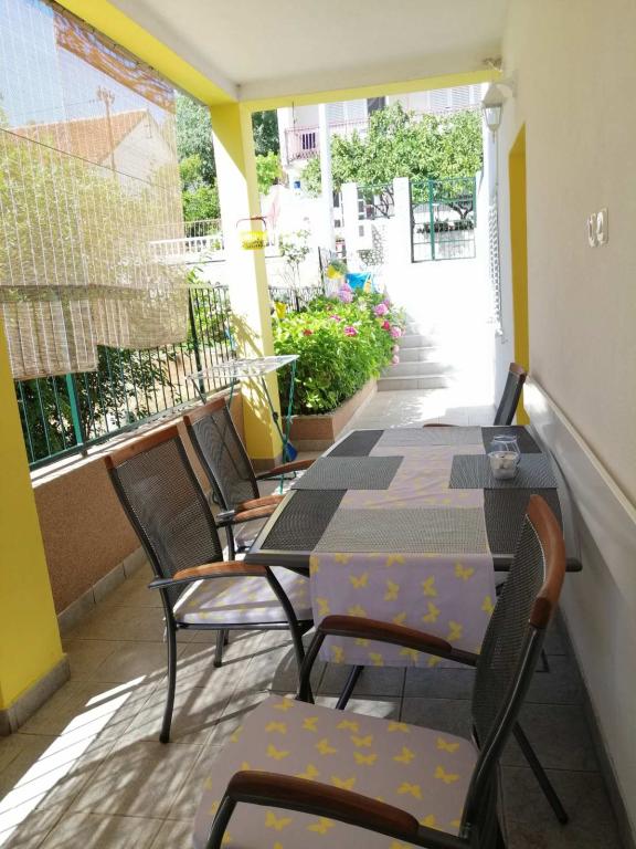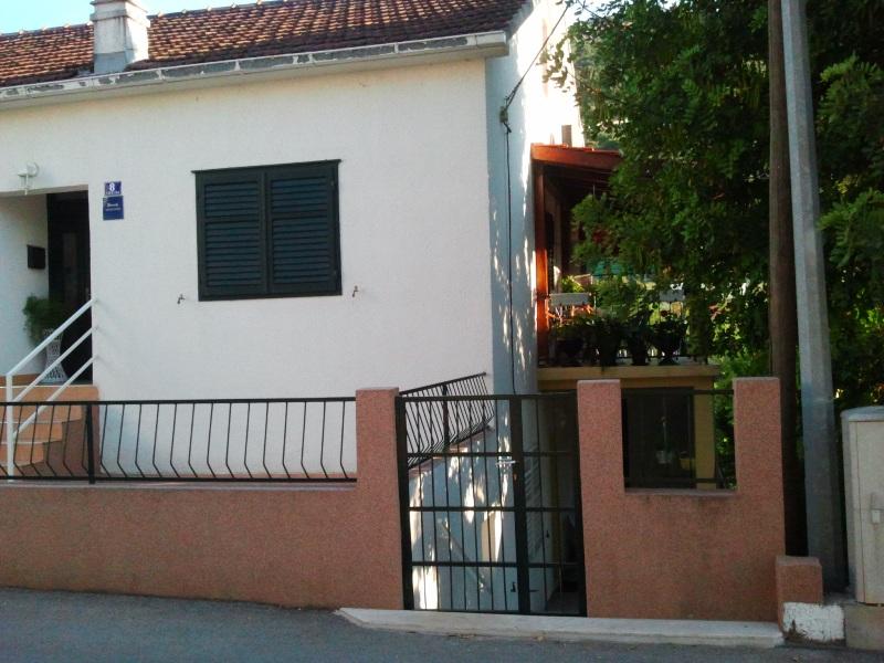 Apartmány se nacházejí v přízemí (suterén) s velkým oploceným dvorem, hostitelé jsou v patře, vhodné pro partu přátel nebo větší rodinu, terasa je společná. Celková kapacita až 8 osob. Dům není u hlavní silnice, jsme na ideálním místě, 10 minut chůze jak od centra, tak od nejkrásnější a největší pláže ve městě. Dvůr je oplocený, což je mimořádně vhodné pro malé děti. Pro zábavu dětí nabízíme trampolínu 305 cm přímo na zahradě, v bezprostřední blízkosti budovy, obklopené olivovými háji a zelenými citrusovými plody. Fotbalové hřiště, basketbalové hřiště, dětský park s dětskými a fitness pomůckami, promenáda-promenáda po celé délce města u moře, dlouhá cca 1,3 km, vhodná pro běh, cyklistiku a procházky, dále schody ke kostelu sv. Rok s cca 250 schody je od domu vzdálen jen asi 150 metrů. Parkování je zajištěno v bezprostřední blízkosti budovy.