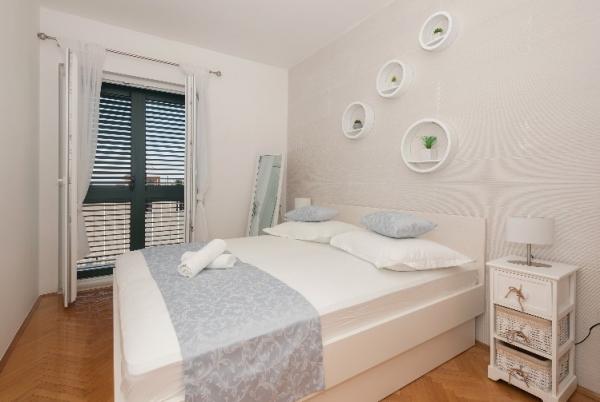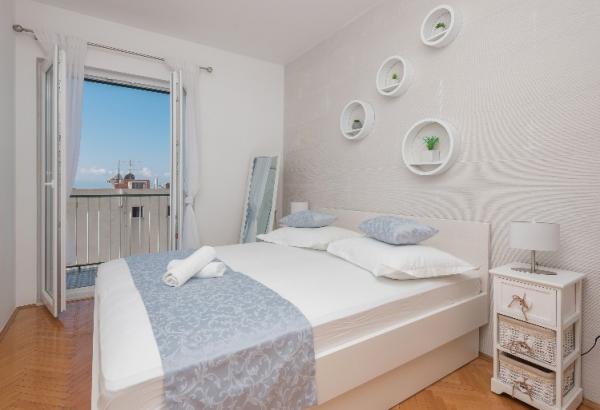 Našim hostům nabízíme moderně vybavený a velmi pohodlný apartmán o velikosti 85 m2, který se skládá ze dvou ložnic, velkého obývacího pokoje s kuchyní, koupelny, samostatného WC, předsíně a terasy s výhledem na moře. Je to 4-5 minut chůze na krásnou oblázkovou pláž s různými restauracemi, bary a dalším vybavením. Jedna z nejkrásnějších promenád na Jadranu vás zavede do centra, které je vzdálené 15 minut chůze. Byt je vybaven klimatizací (je v obývacím pokoji, ale bez problémů ochladí celý byt), wi-fi, Smart TV, Netflix, prostornou koupelnou a plně vybavenou kuchyní. K dispozici jsou také dvě parkovací stání (v ceně).