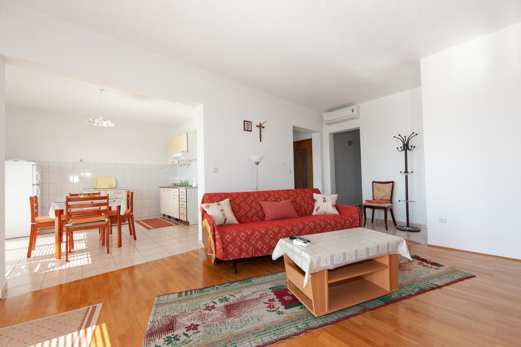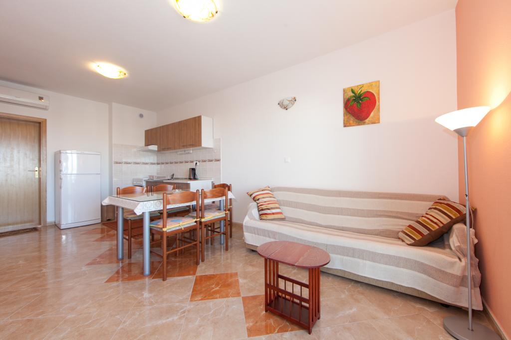 Kate I Apartments se nachází u hlavní silnice v centru města Tučepi. Tato nemovitost je 3 minuty chůze od pláže pomocí podchodu 5 m od domu. Parkování je ve dvoře před objektem, možnost využití garáže.