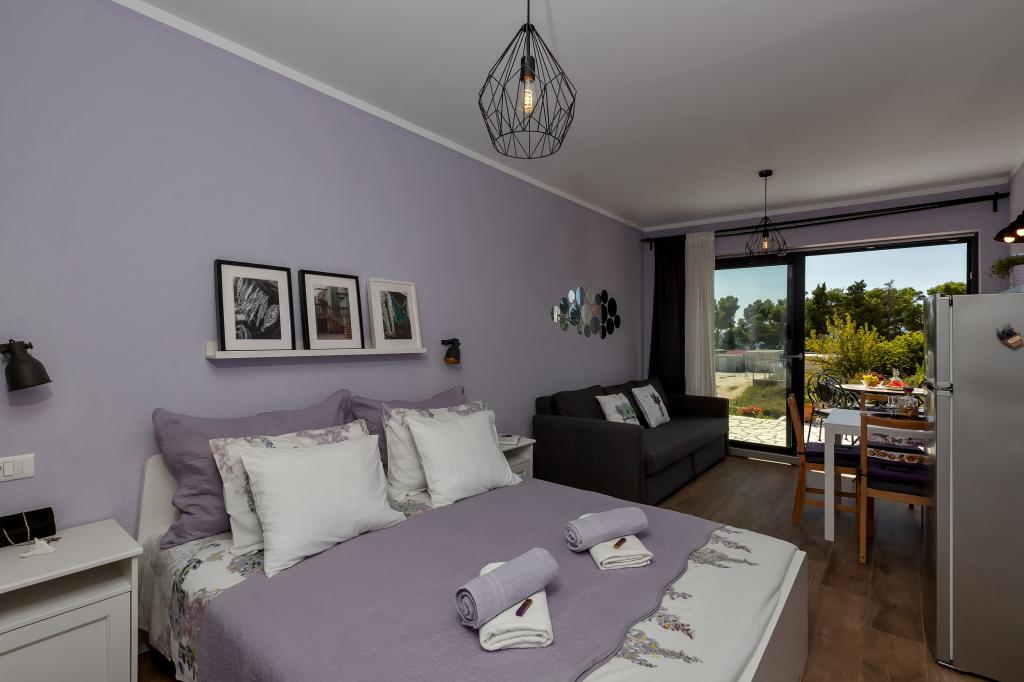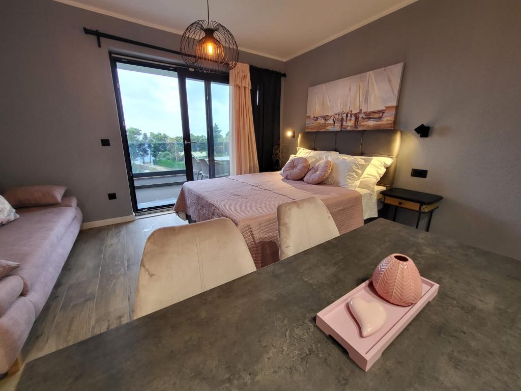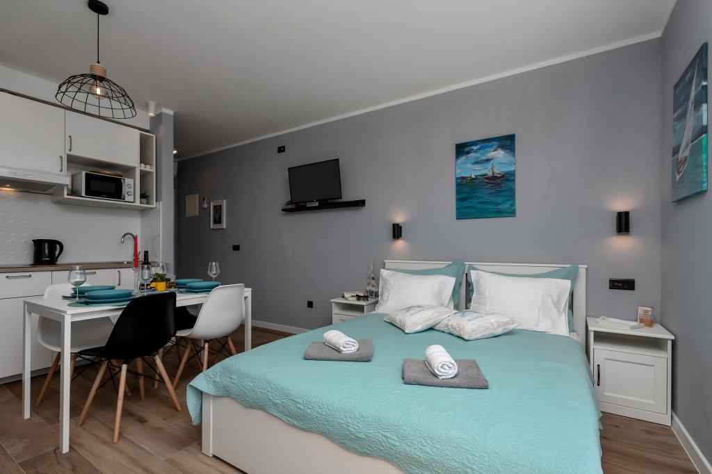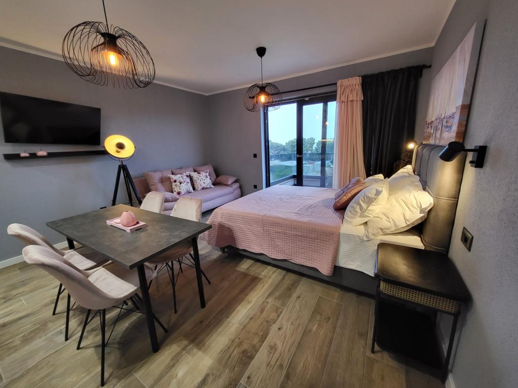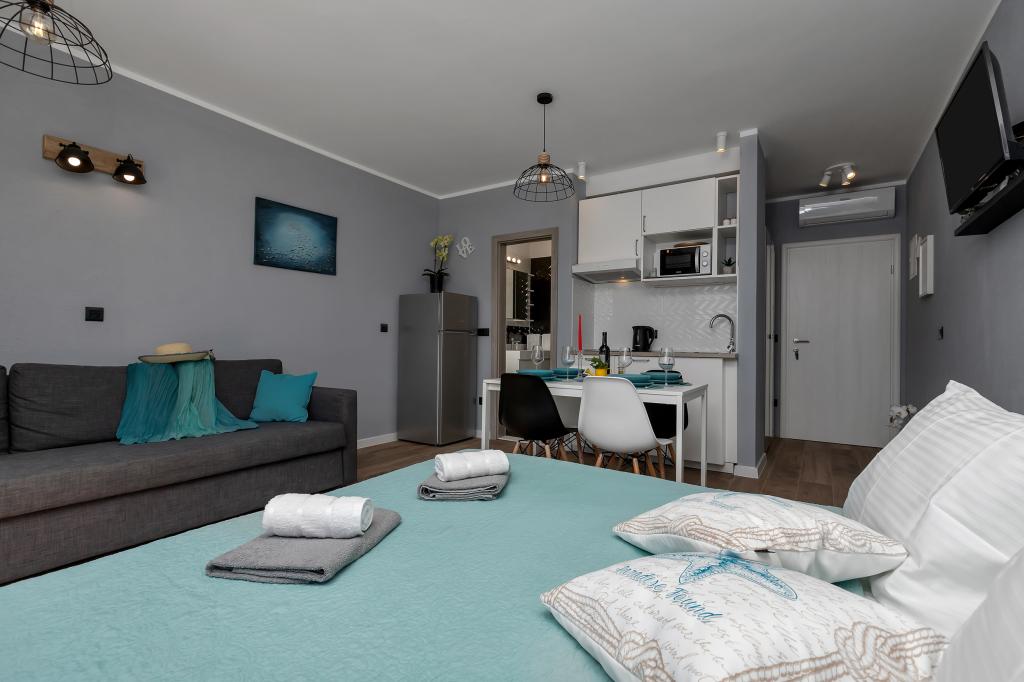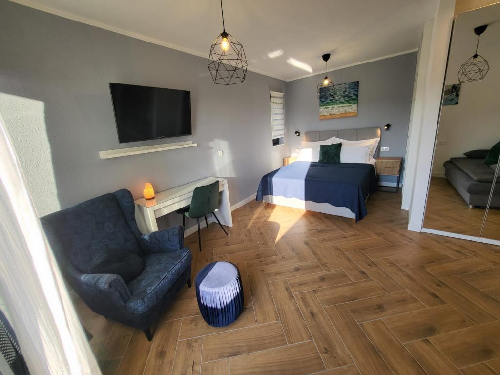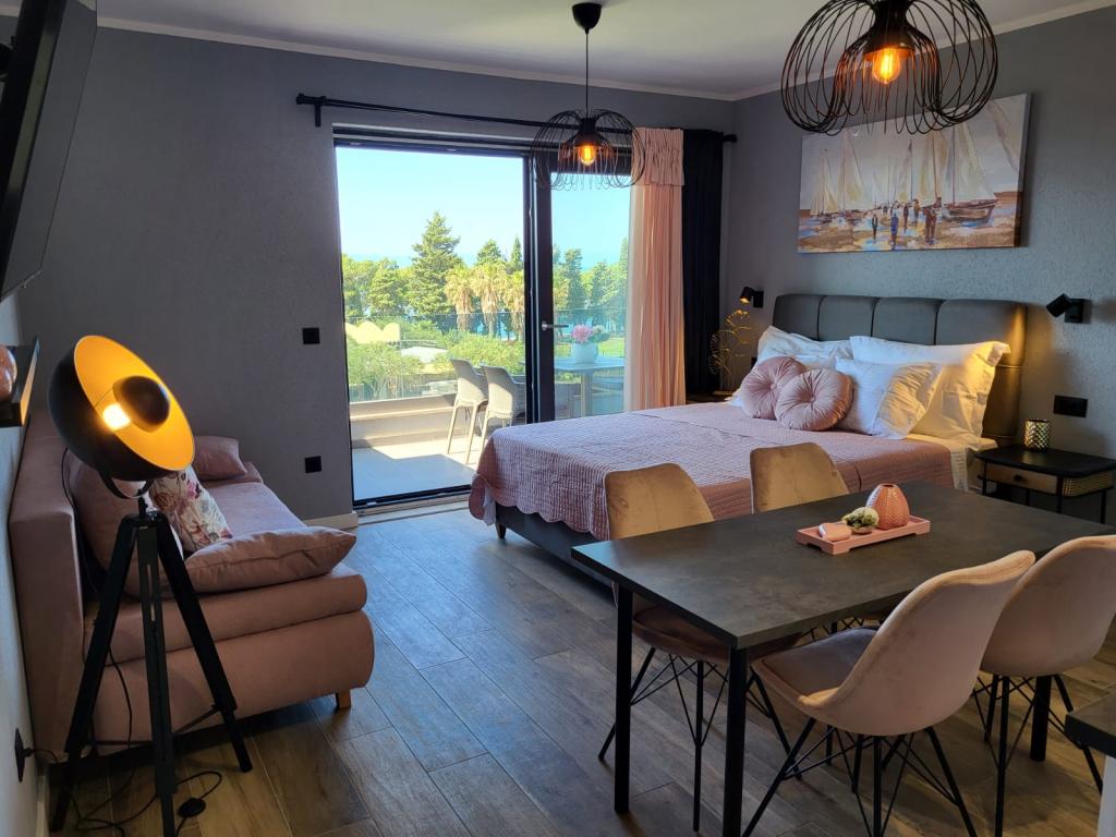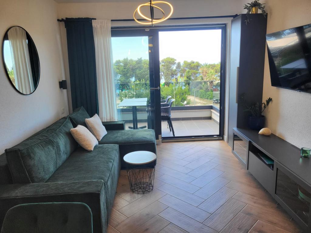 Moderně vybavené apartmány umístěné v první řadě k moři. Zařízení se nachází pár minut chůze od pláže. V okolí objektu se v současné době v daném místě nenacházejí žádné další domy. Parkování je zdarma a garáž je k dispozici za příplatek. Vřelé přivítání a příjemný pobyt všem hostům.