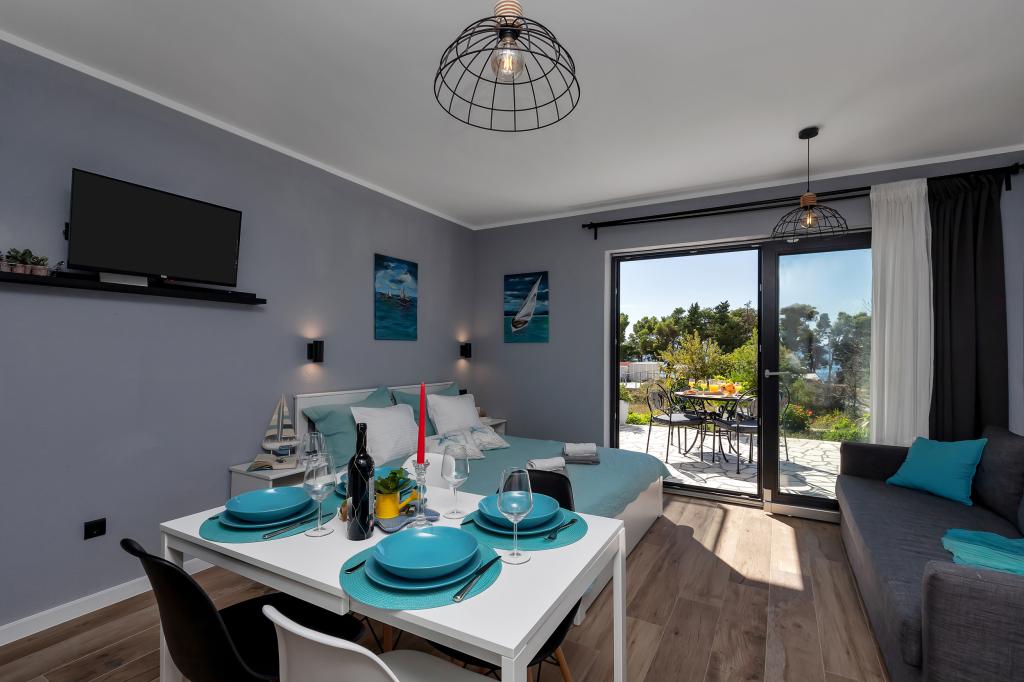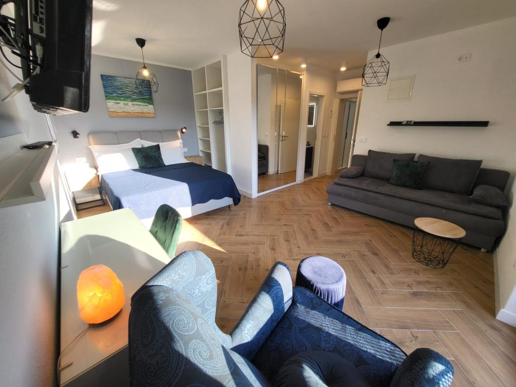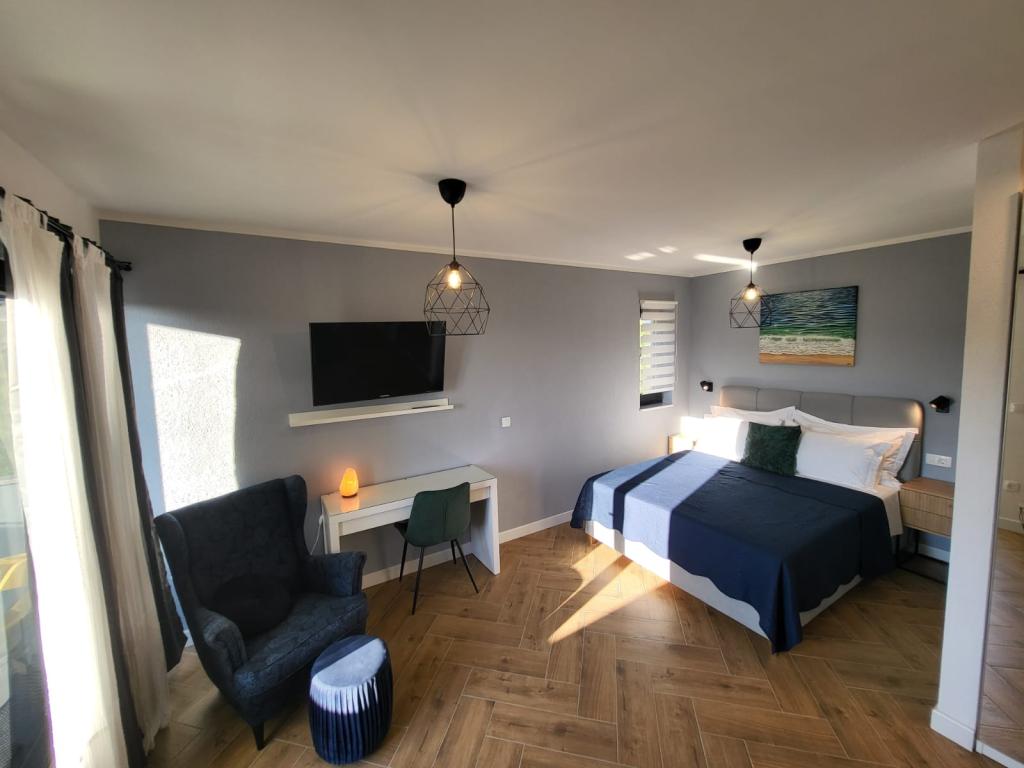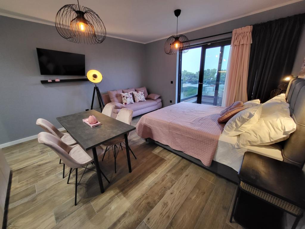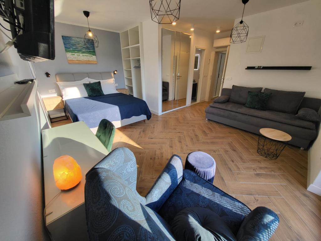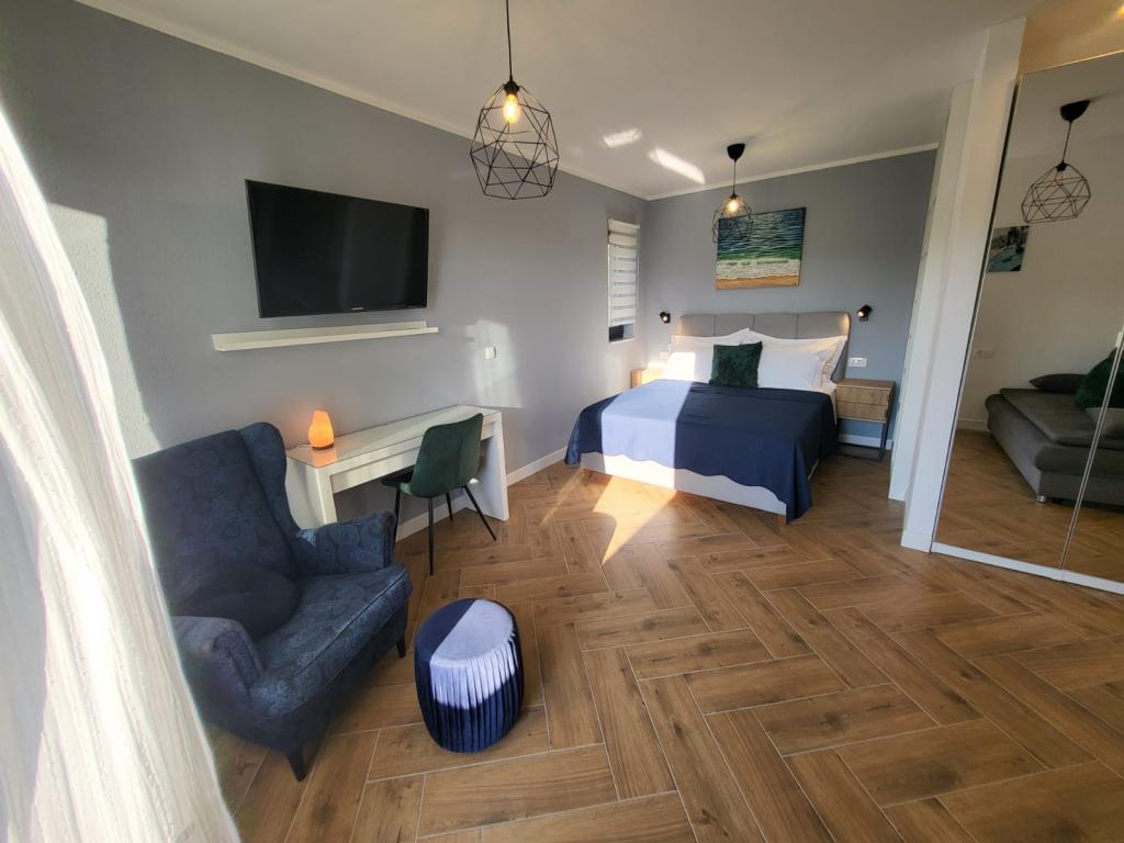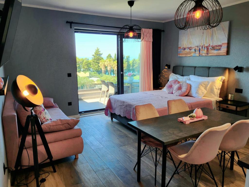 Moderně vybavené apartmány umístěné v první řadě k moři. Zařízení se nachází pár minut chůze od pláže. V okolí objektu se v současné době v daném místě nenacházejí žádné další domy. Parkování je zdarma a garáž je k dispozici za příplatek. Vřelé přivítání a příjemný pobyt všem hostům.