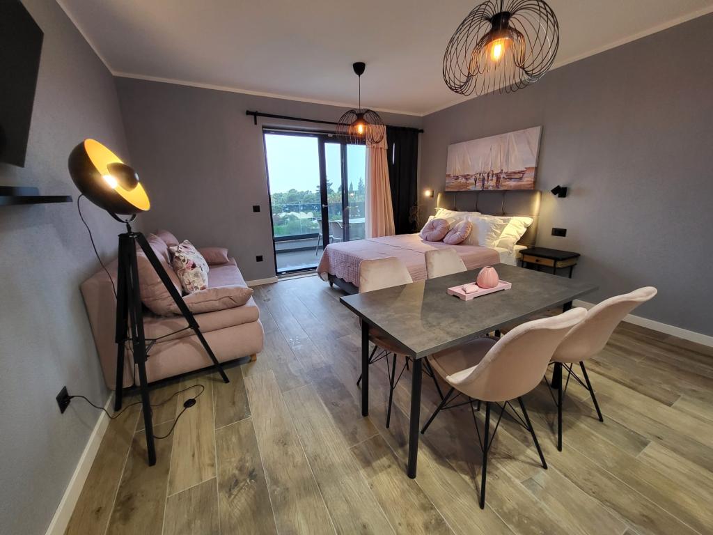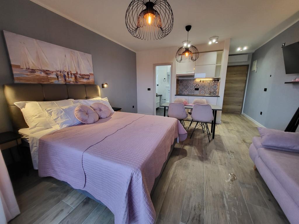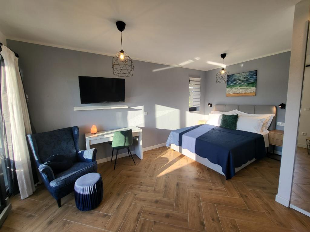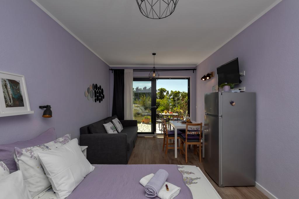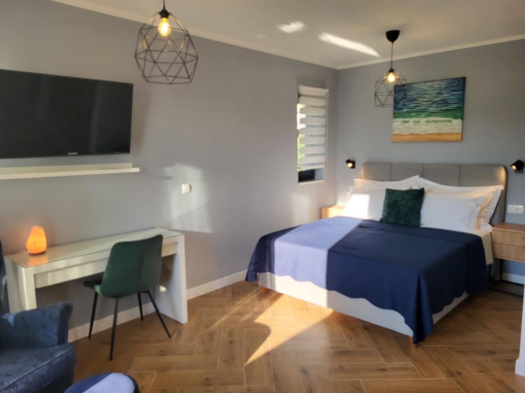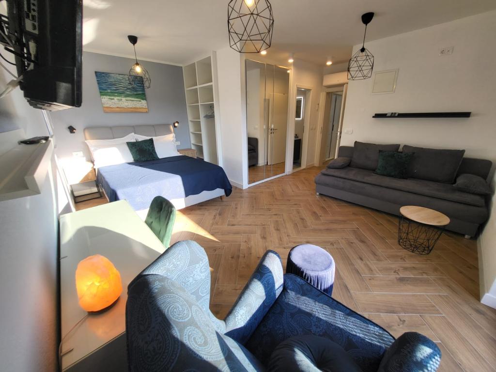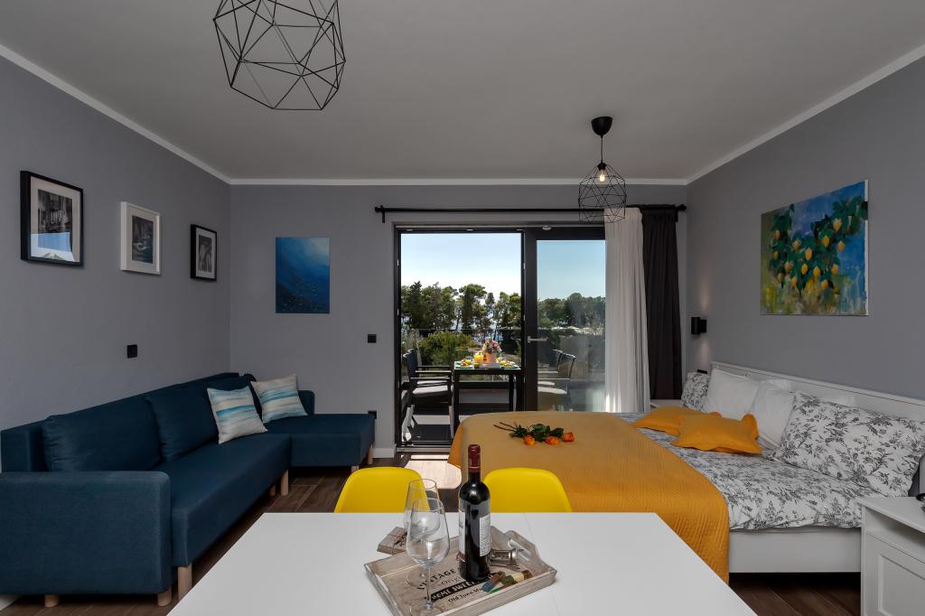 Moderně vybavené apartmány umístěné v první řadě k moři. Zařízení se nachází pár minut chůze od pláže. V okolí objektu se v současné době v daném místě nenacházejí žádné další domy. Parkování je zdarma a garáž je k dispozici za příplatek. Vřelé přivítání a příjemný pobyt všem hostům.