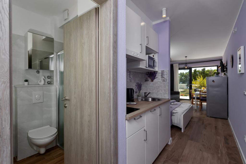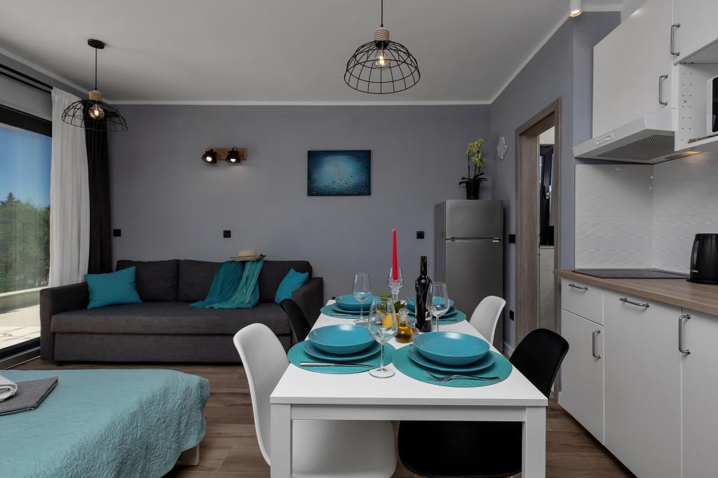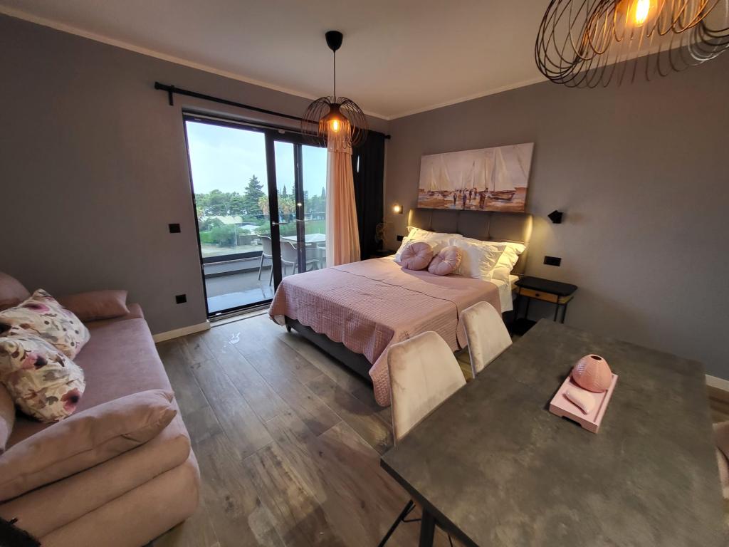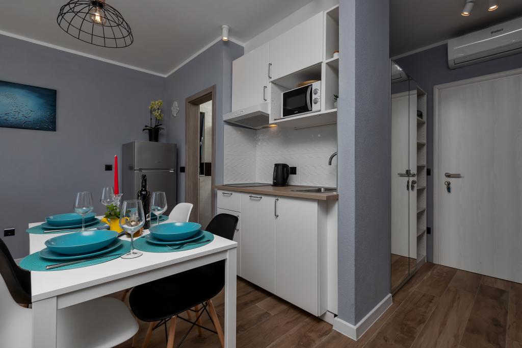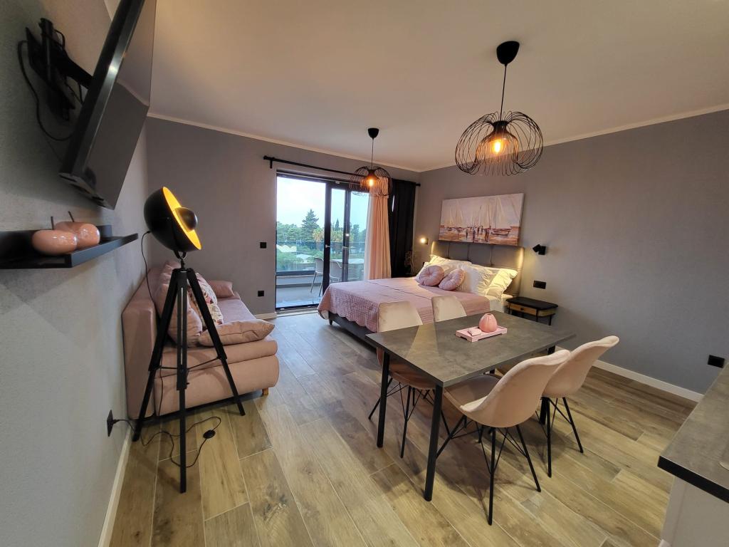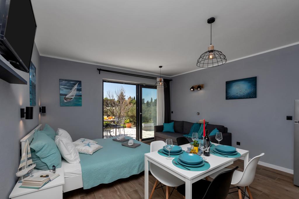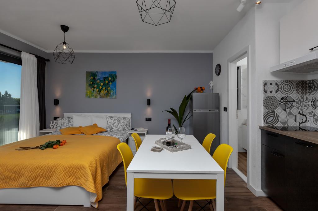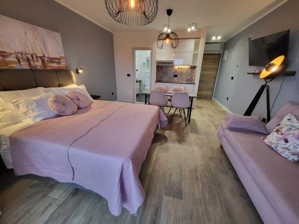 Moderně vybavené apartmány umístěné v první řadě k moři. Zařízení se nachází pár minut chůze od pláže. V okolí objektu se v současné době v daném místě nenacházejí žádné další domy. Parkování je zdarma a garáž je k dispozici za příplatek. Vřelé přivítání a příjemný pobyt všem hostům.