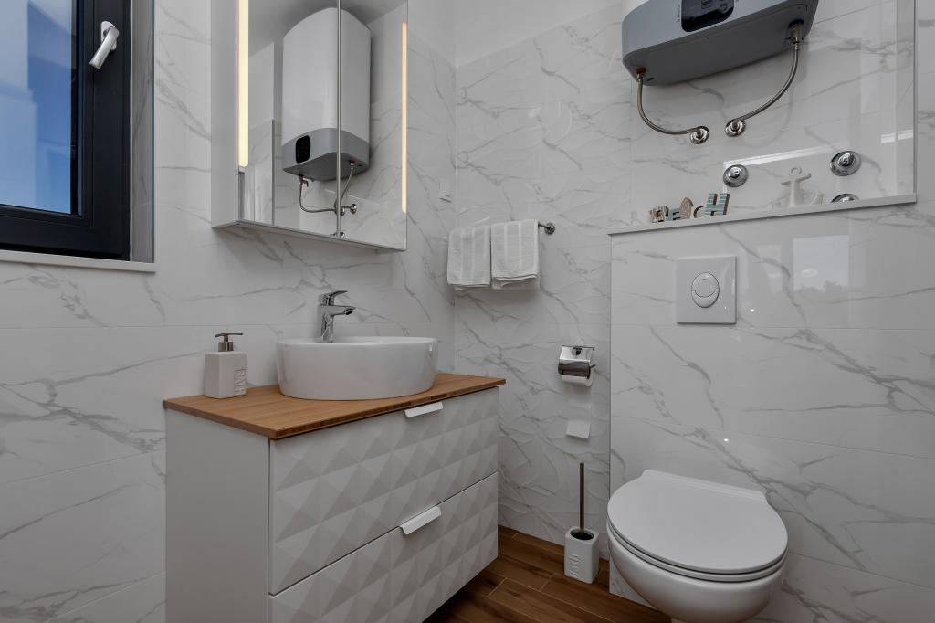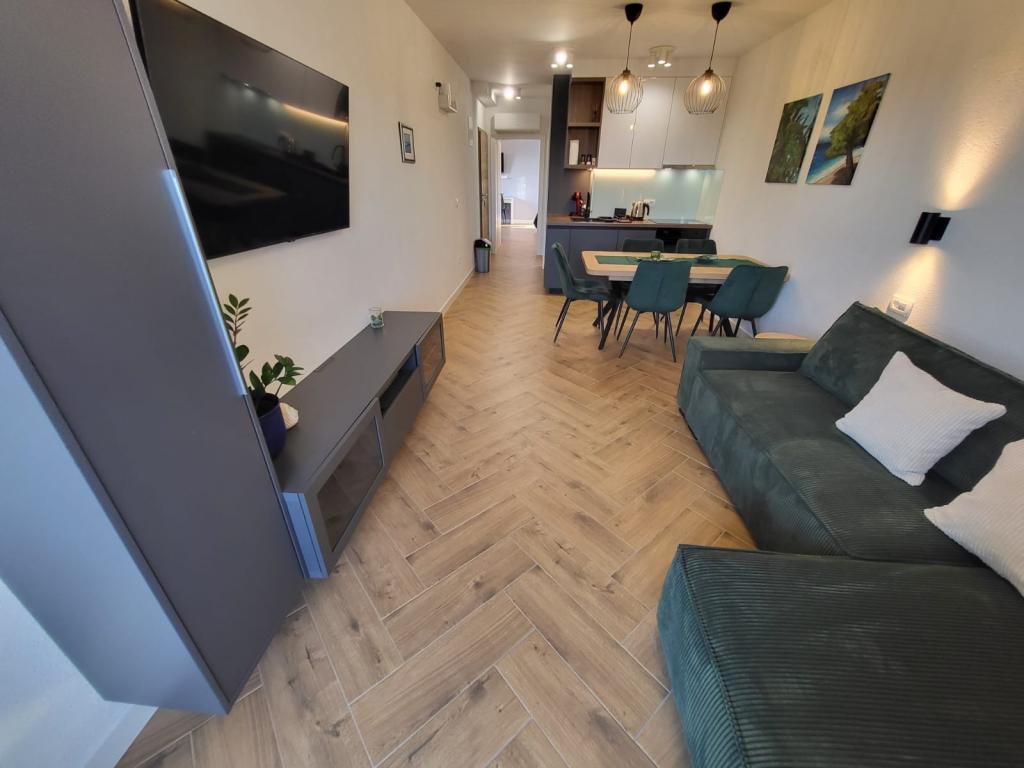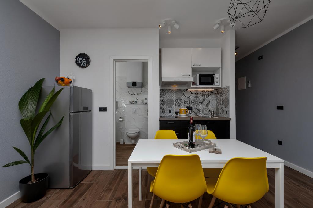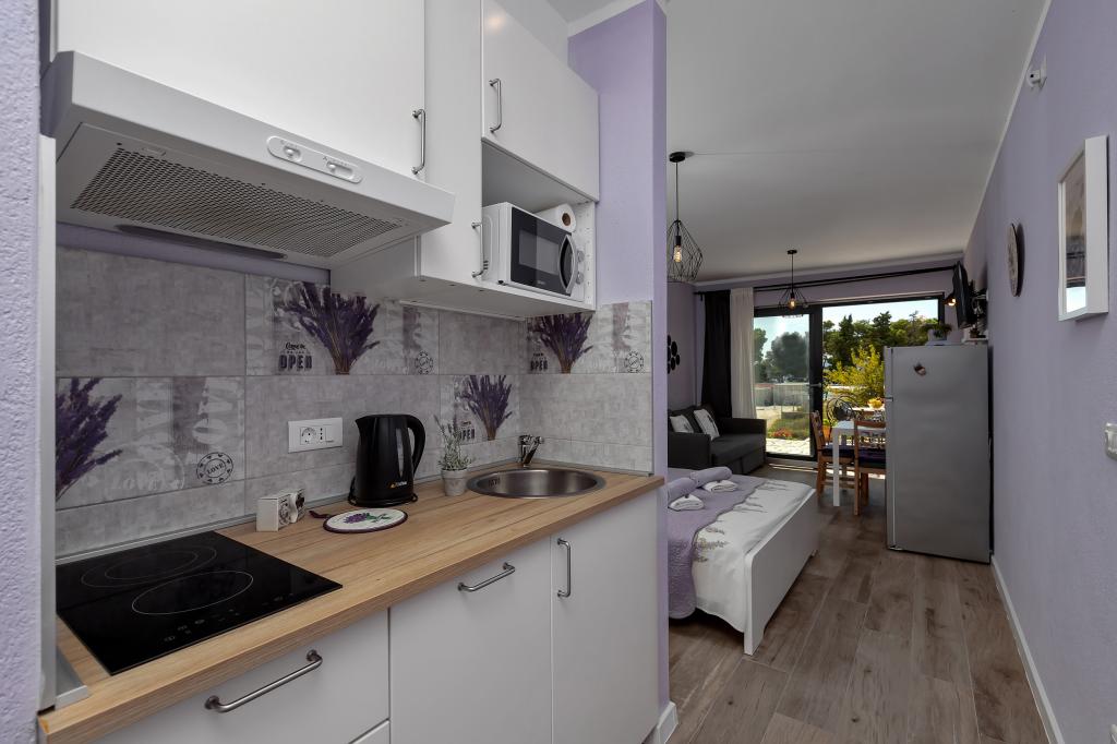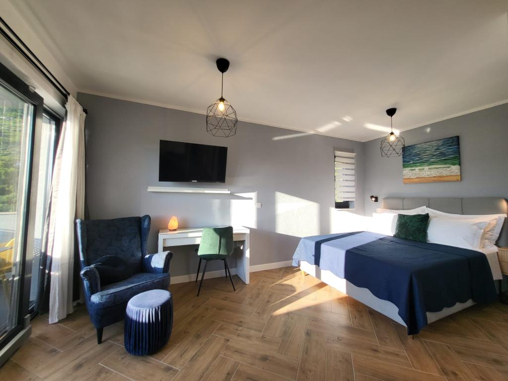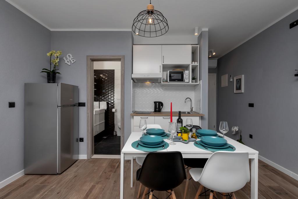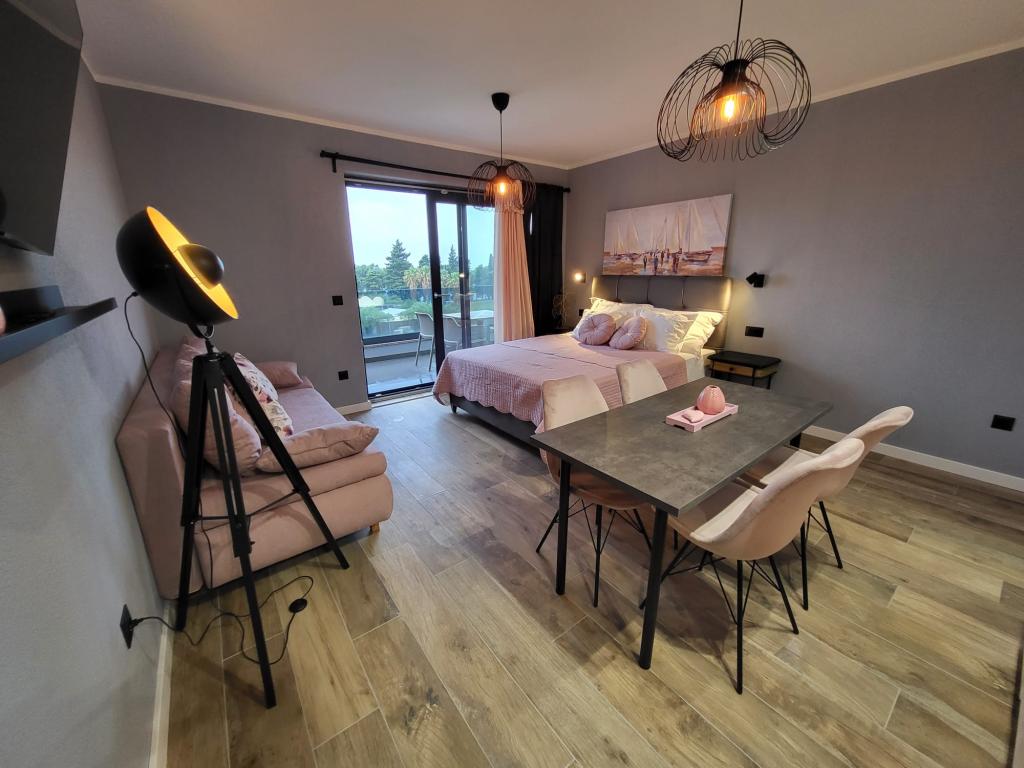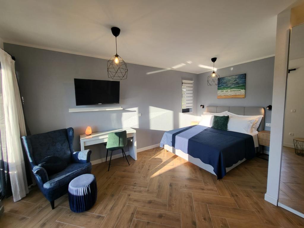 Moderně vybavené apartmány umístěné v první řadě k moři. Zařízení se nachází pár minut chůze od pláže. V okolí objektu se v současné době v daném místě nenacházejí žádné další domy. Parkování je zdarma a garáž je k dispozici za příplatek. Vřelé přivítání a příjemný pobyt všem hostům.