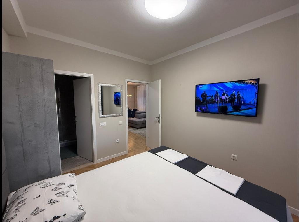 Krásný, moderní byt s výhledem na moře a velké balkony. Dvě velké ložnice a pěkný obývací pokoj s rozkládací pohovkou. Dekor elegantní a moderní na nejvyšší úrovni. Velká kuchyň a prostorná plně vybavená kuchyň, dvě velké koupelny s pračkou k dispozici pro hosty. Velmi blízko pláže a centra Tučepi. Majitelé byli velmi milí a ochotní. Doporučil bych tento apartmán přátele a doufám, že jednoho dne budeme tam vrátí.