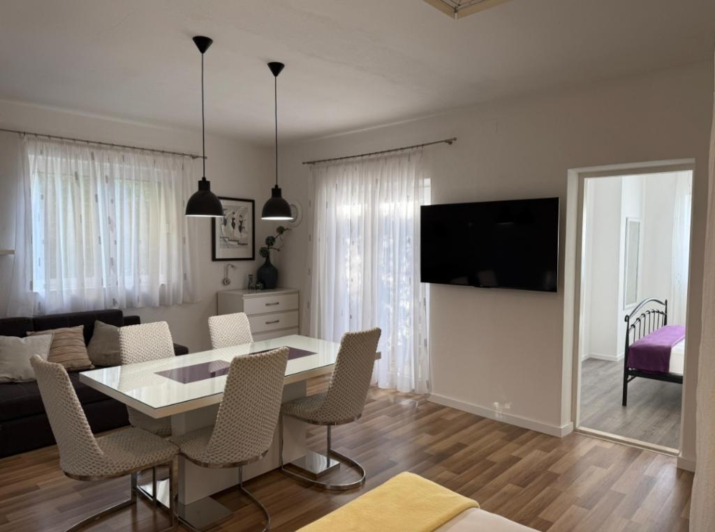 Hostitelé byli velmi milí a postarali se, aby nám nic nechybělo. Byt 4+1 krásně zařízený. Velmi prostorný. Uvnitř je čistá a voňavá. Výhled z terasy je úžasný. Nemůžeš se na to přestat dívat. Kousek na pláž a do centra. Velmi blízko. Strávili jsme zde nádherný týden a až se vrátíme do Tučepi, zůstaneme pouze zde