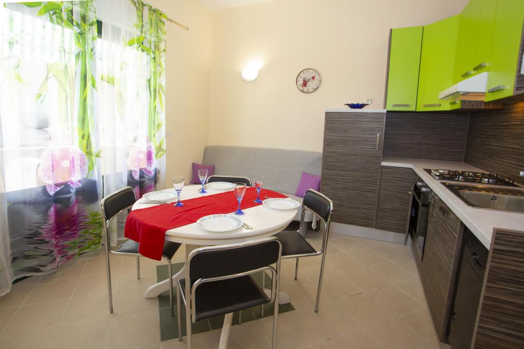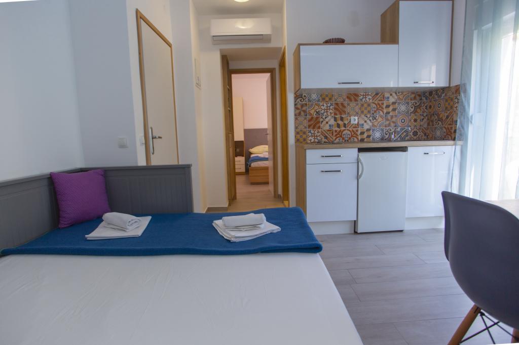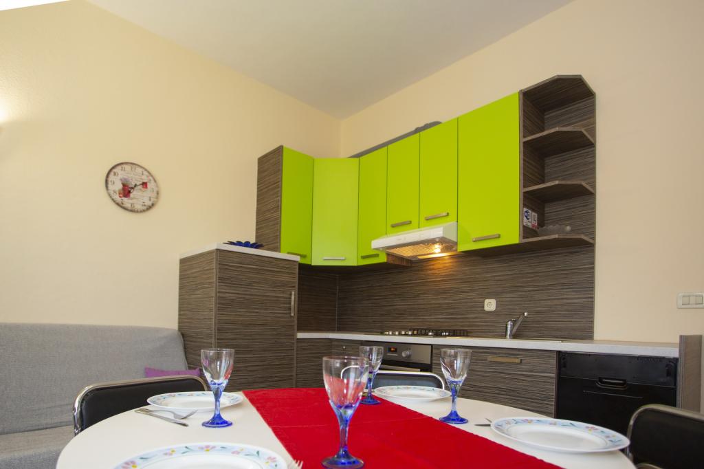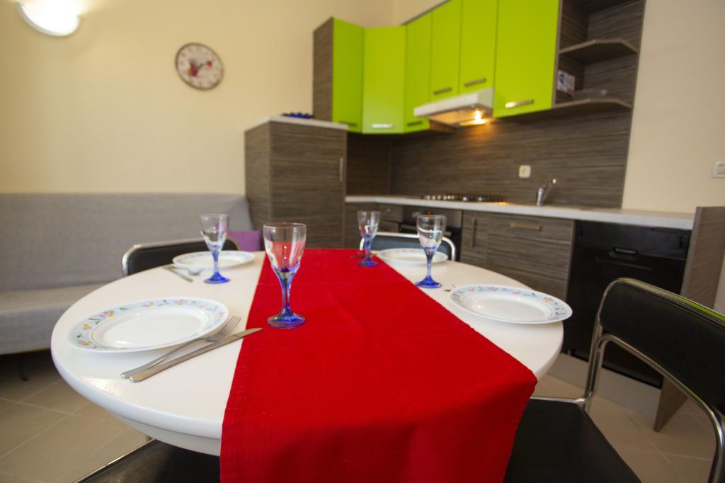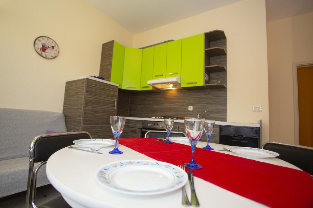 Plně vybavené apartmány. Dům se nachází u místní komunikace. Z budovy na pláž 3 minuty pěšky a 10 minut do centra. Restaurace a obchody v okolí 3-10 minut. Parkování je ve dvoře před domem 20 metrů.