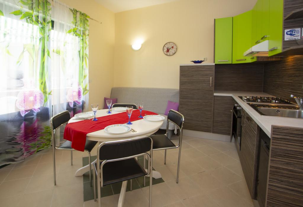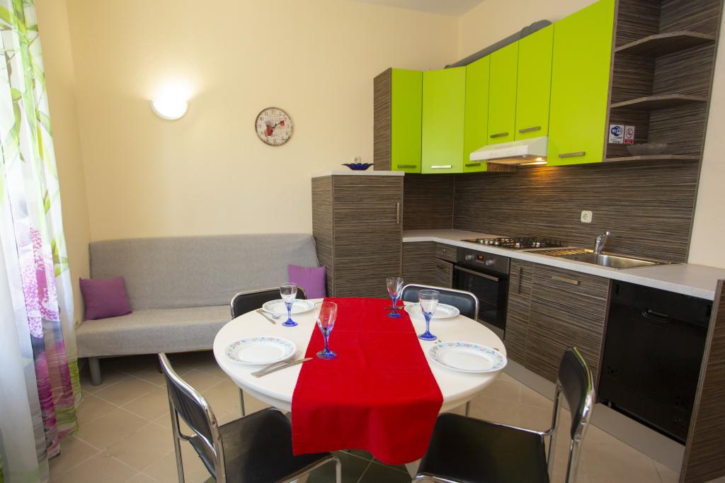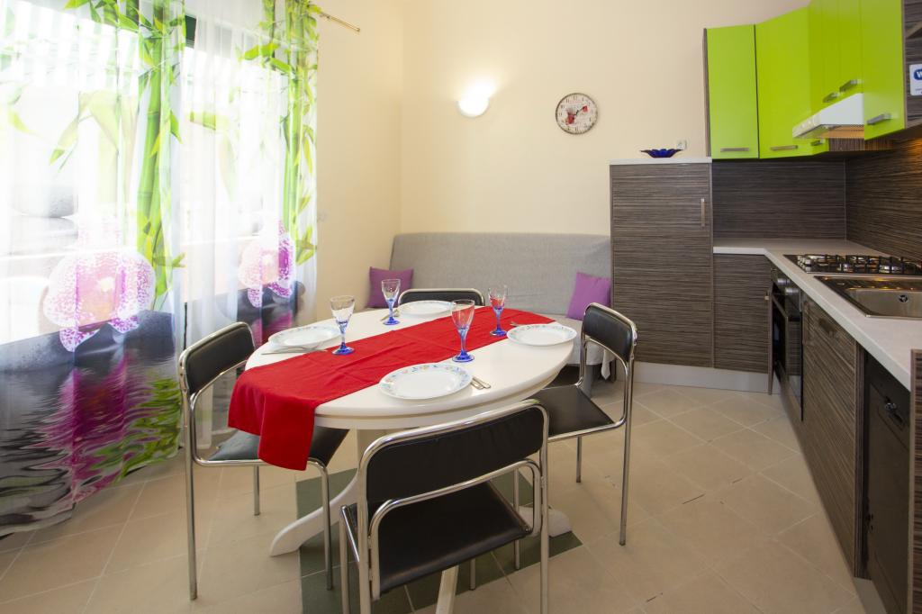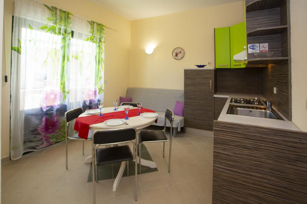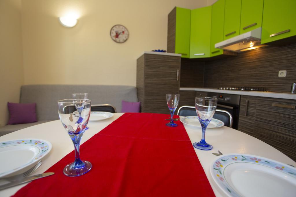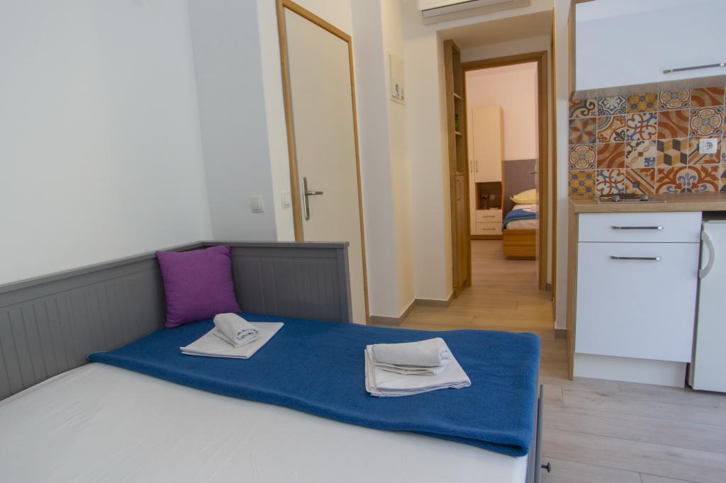 Plně vybavené apartmány. Dům se nachází u místní komunikace. Z budovy na pláž 3 minuty pěšky a 10 minut do centra. Restaurace a obchody v okolí 3-10 minut. Parkování je ve dvoře před domem 20 metrů.