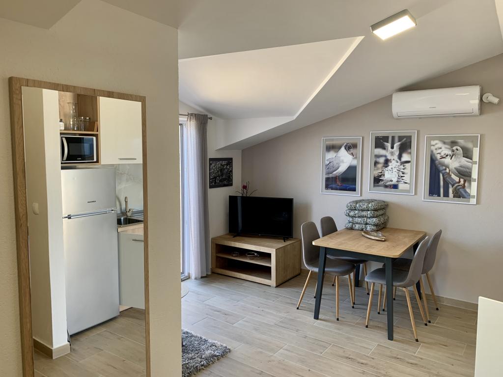 Krásné ubytování, přesně jako na fotkách, čisté, skvěle vybavené, krásný výhled na moře, pláž pár metrů blízko obchody, pekárny, kavárny, restaurace. Domácí velmi příjemní a vstřícní lidé.