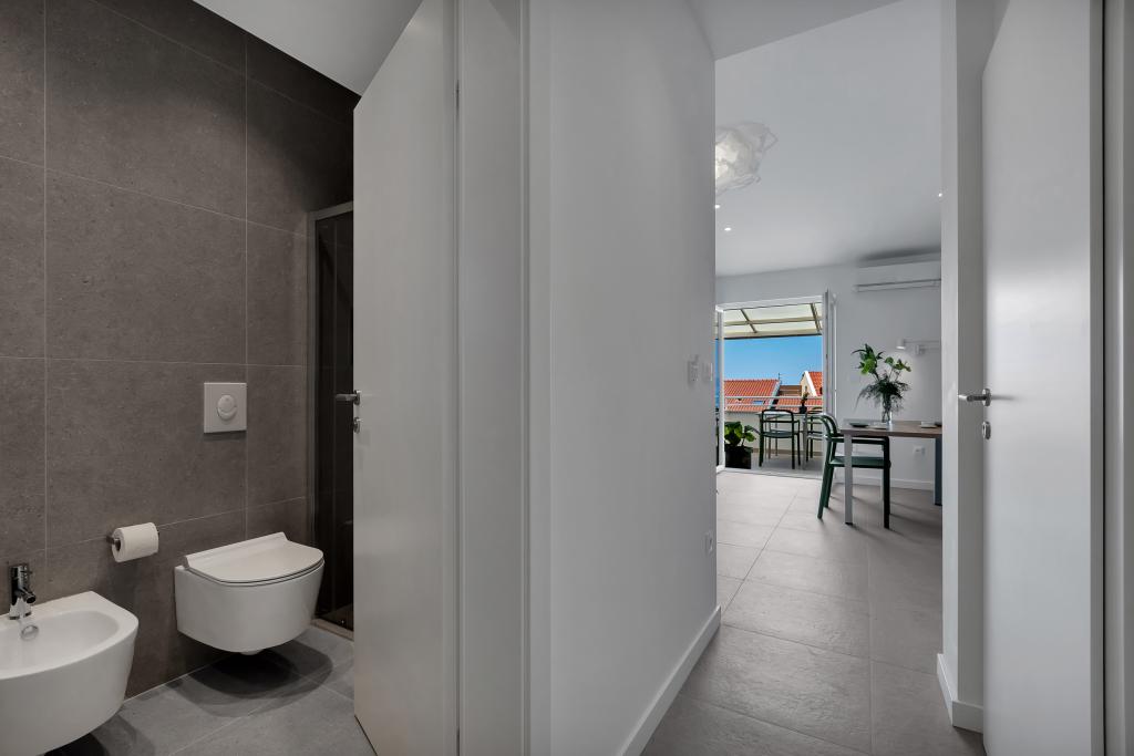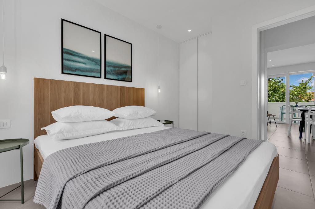 Apartmány č. 18 se nachází v blízkosti moře a oblázkové pláže zdobené borovicemi vytvářejícími příjemný stín. Apartmány jsou nově zrekonstruované, plně vybavené s velkými lodžiemi a vlastním parkovištěm. Jen pár minut chůze do centra města a všech důležitých zařízení.
