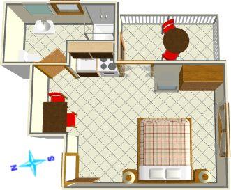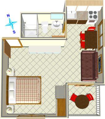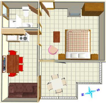 Studio apartmán pro dvě osoby se dvěma přistýlkami (32 m2)