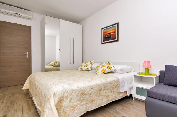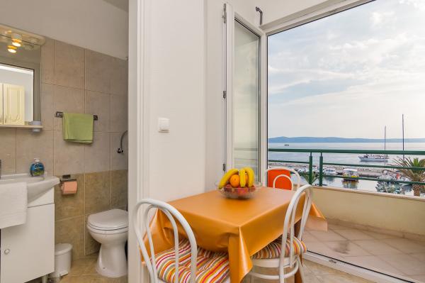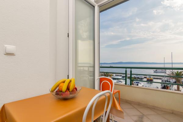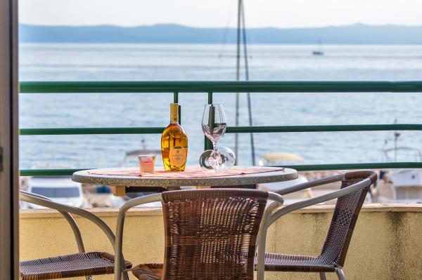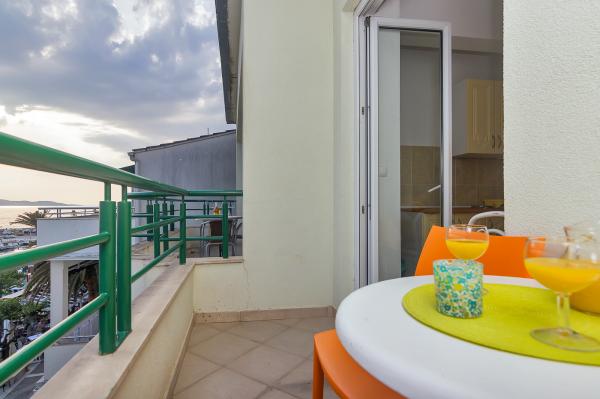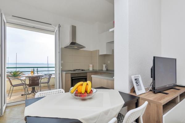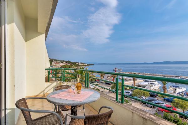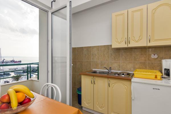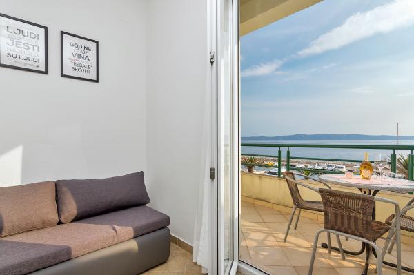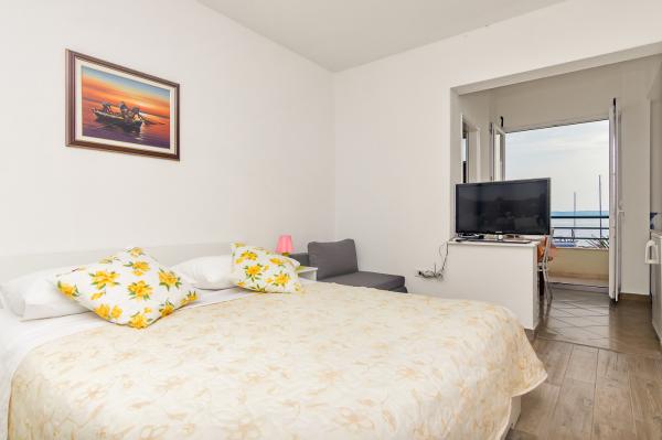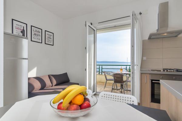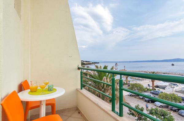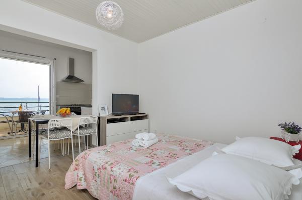 Studiové apartmány v centru Tučepi, v první řadě. Pouze 50 metrů od pláže. Apartmány jsou moderně vybavené a mají výhled na moře a přístav.