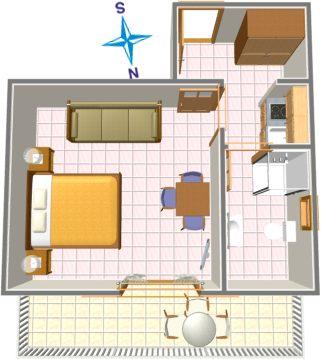 Apartmán pro dvě osoby se dvěma přistýlkami (29 m2)