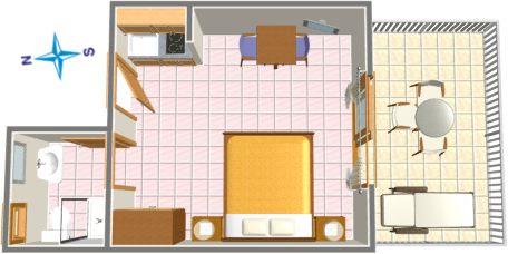 Apartmán pro dvě osoby se dvěma přistýlkami (22 m2)